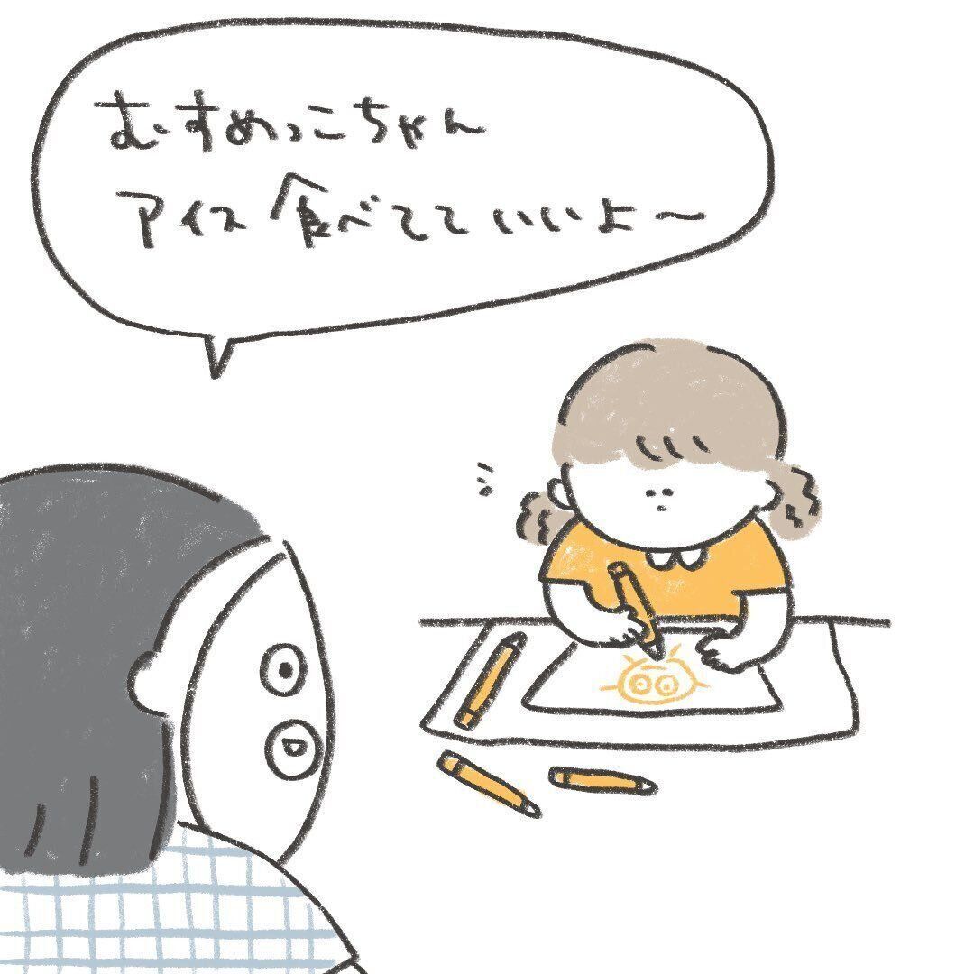 ありま刺繍作家さん(@arimama_umauma)が投稿したのは、4歳娘のかわいすぎる言動を描いたほっこり漫画。「(先に)アイス食べてていいよ」というありまさんの言葉に娘から返ってきた言葉とは⁈この投稿に3.7千件のいいねが集まりました。