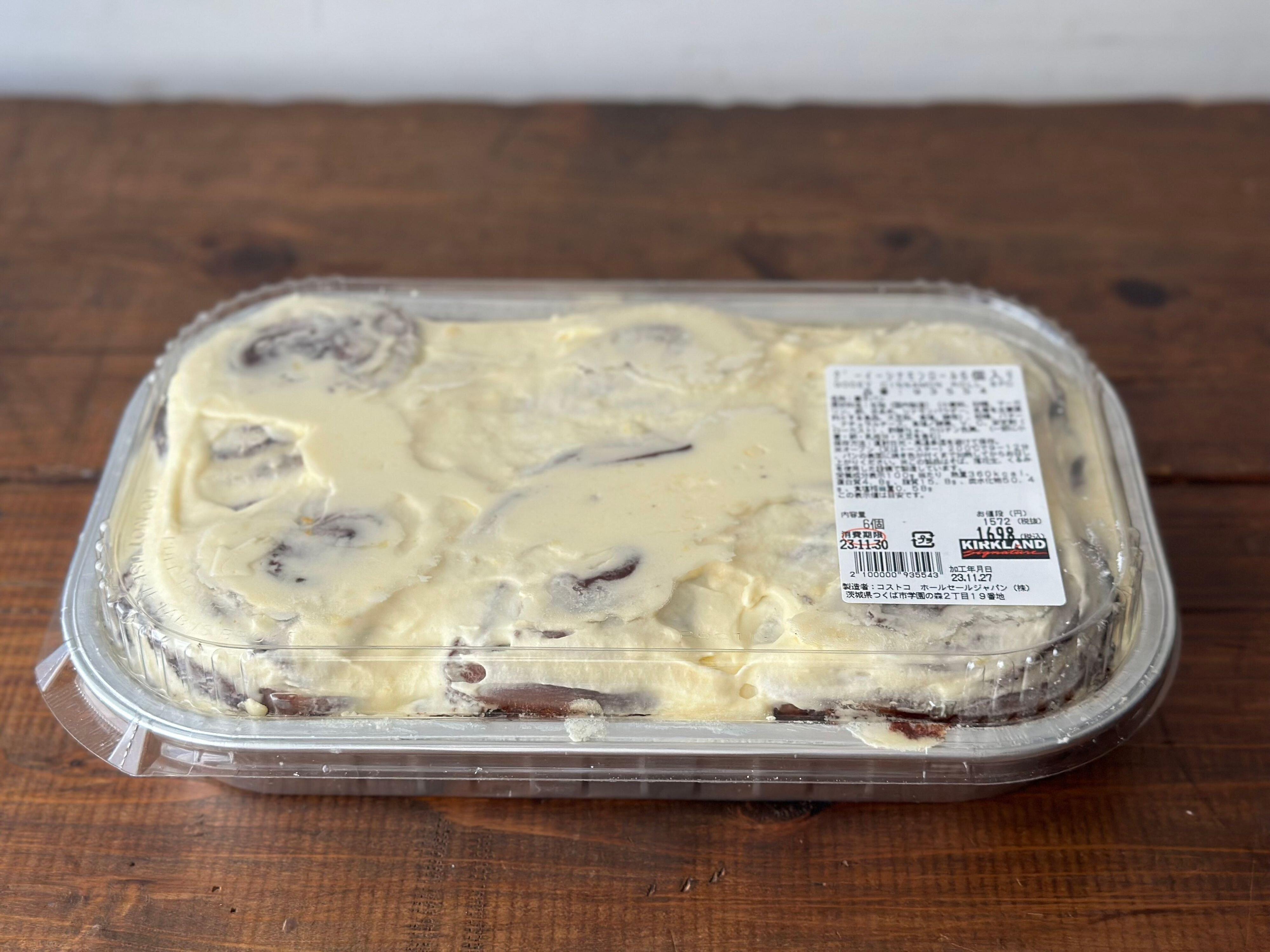 食べる前に、オーブンで焼き上げることで、トップのアイシングが溶け出して、ボトムのシナモンロールにじんわりと染み込みます。
