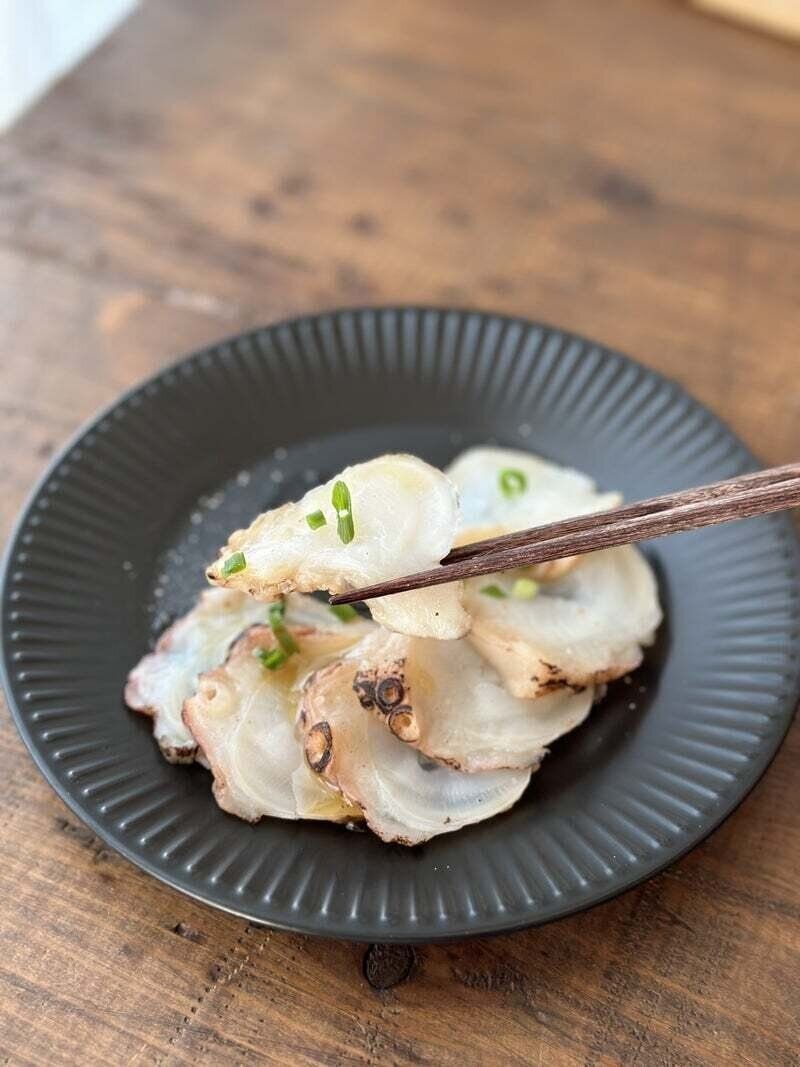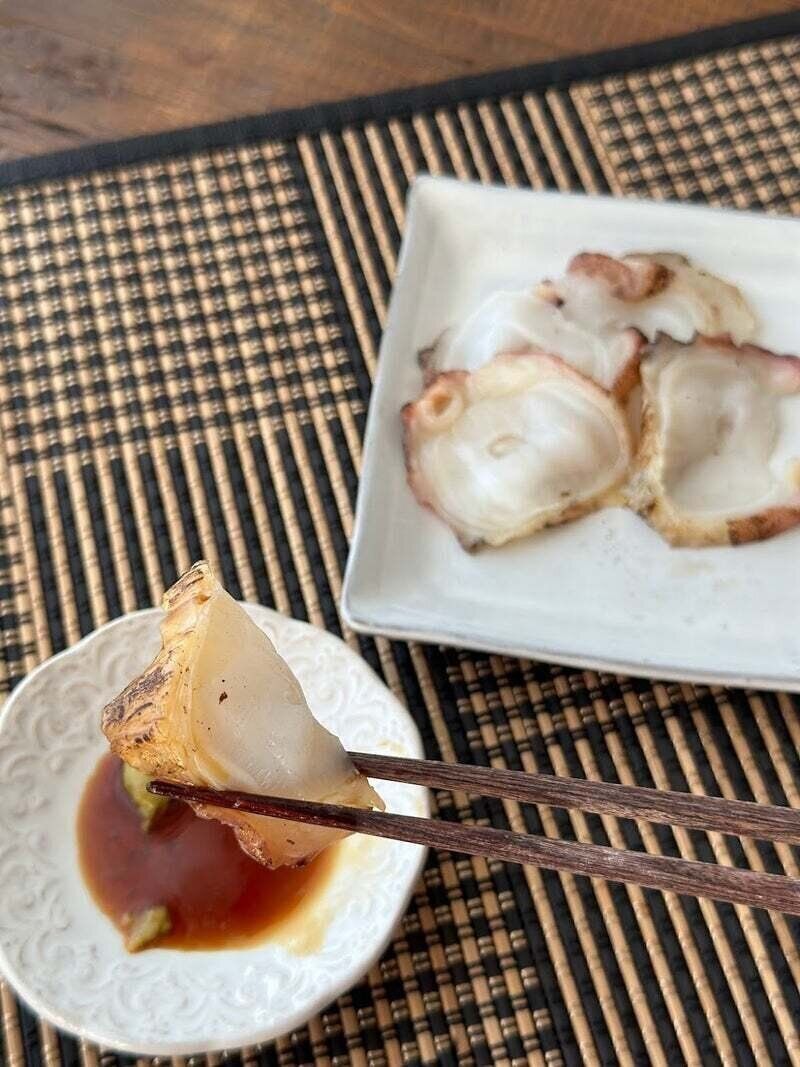 こちらの商品は、生の状態のたこを使い、表面だけ軽く炙って仕上げられています。生たこの割には、身がプリッと硬めで、鮮度の良さを感じられました。