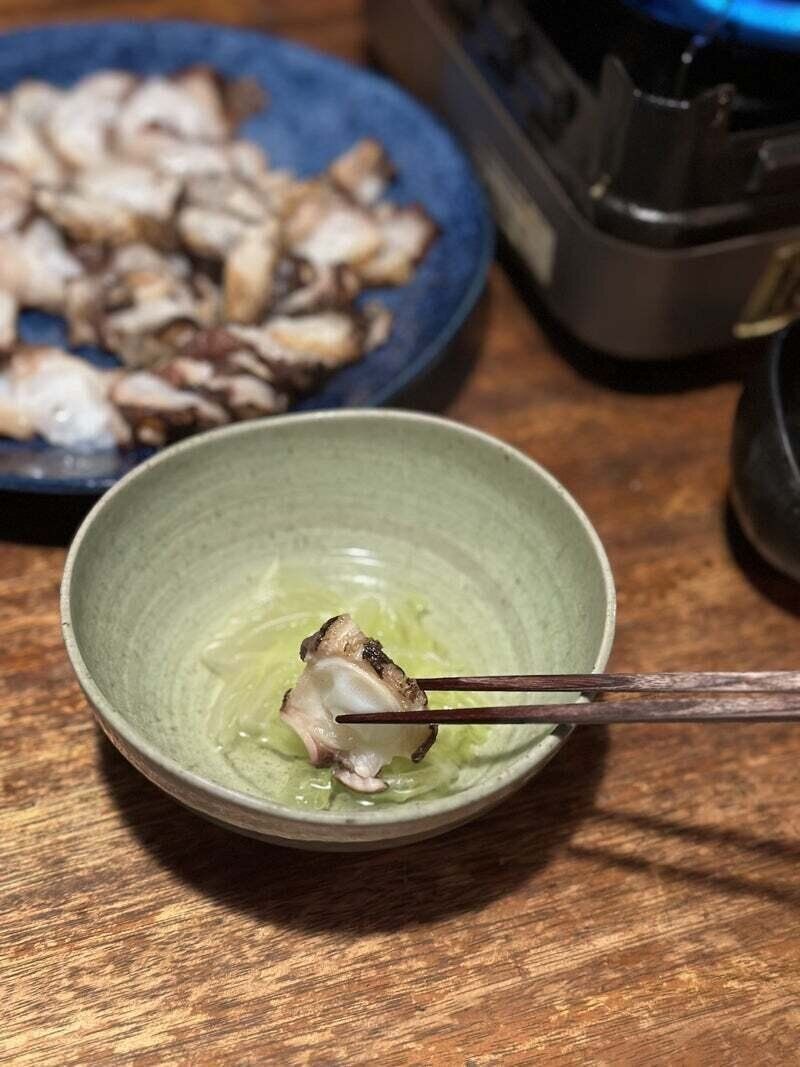 ごま油と塩でいただくことで、香ばしさがより引き立ち、たこの甘さも際立ちました。これはおいしい!