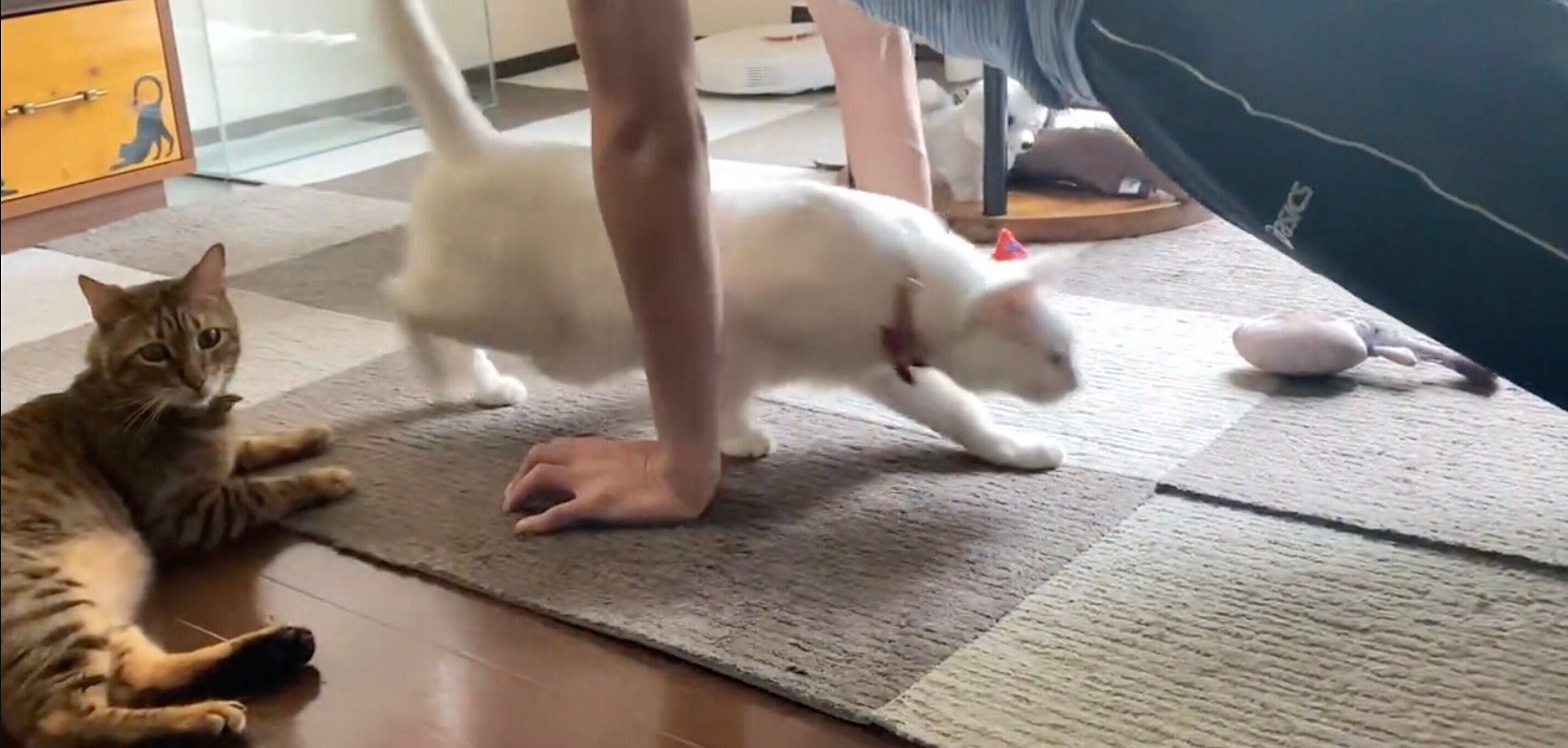 無重力猫ミルコのお家さんが「筋トレに協力的な猫たちをご覧ください」というコメントとともに動画を投稿しました。
