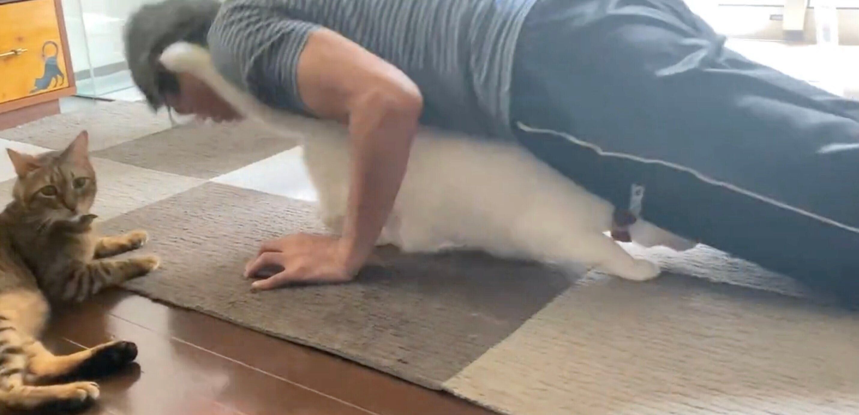 筋トレに協力的な猫たちご覧ください💪🐱💪 pic.twitter.com/zmnak2VA0v