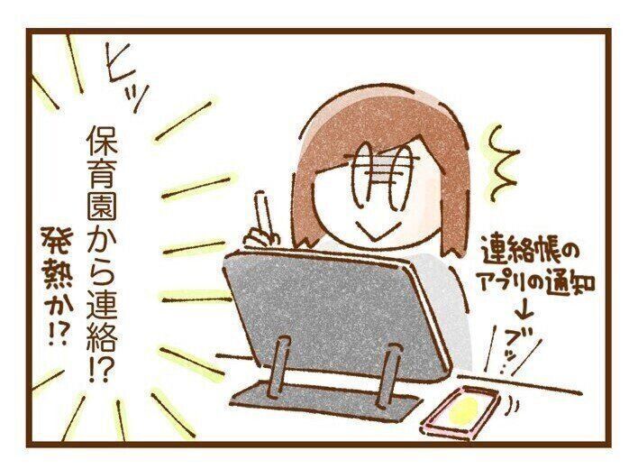 当時、お仕事中だったいよかんさん。保育園の連絡帳アプリから通知が届き「ヒッ」と息を呑みました。