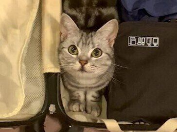もともと四角いスペースが大好きなんですね。隙間の空いたスーツケースを見たあんこくんは「これは入るしかない!」と思ったかもしれません。