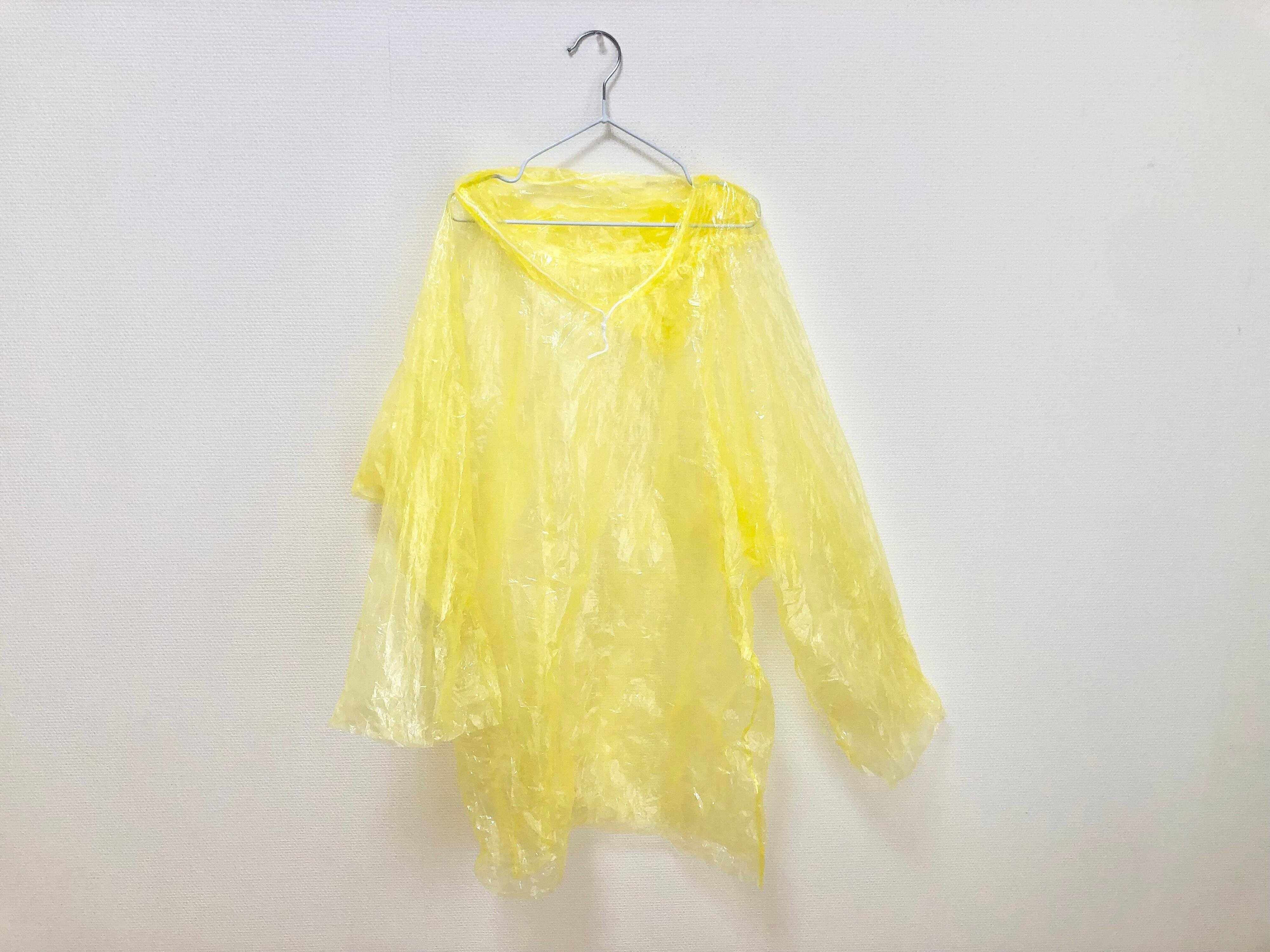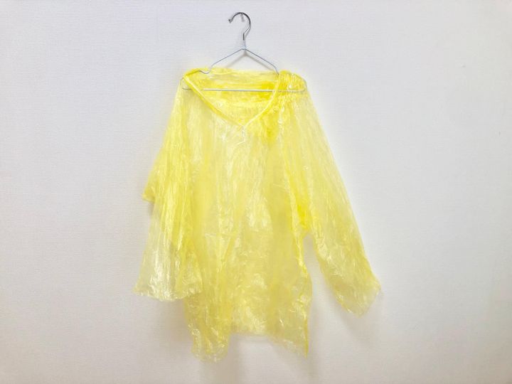 カラーは大人用は透明で、子ども用は黄色。デザインはどちらも被って着るポンチョのようなタイプのレインコートです。