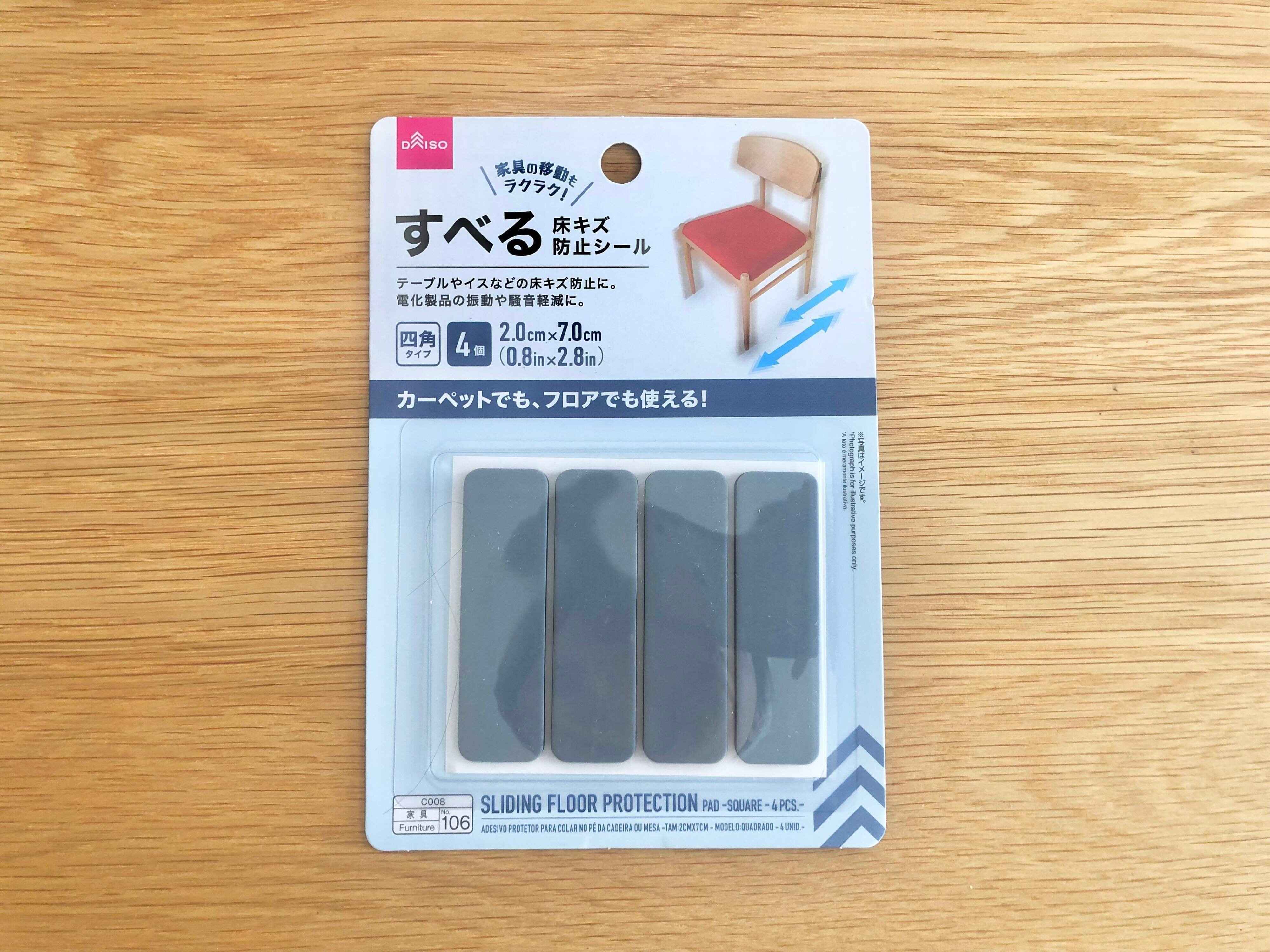 ご紹介するのは、ダイソーの「すべる床キズ防止シール」という商品です。