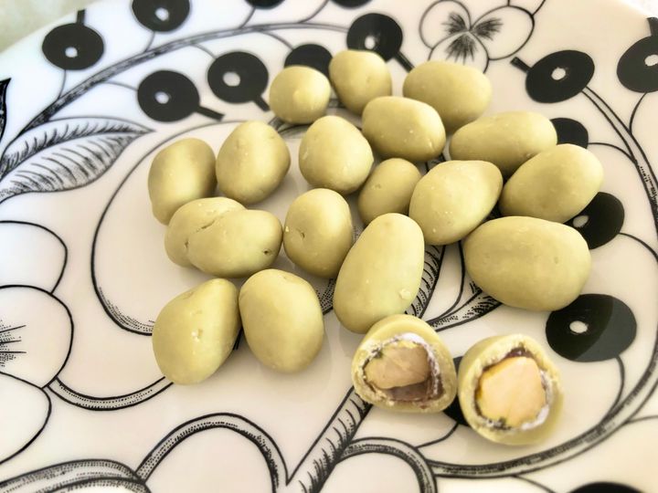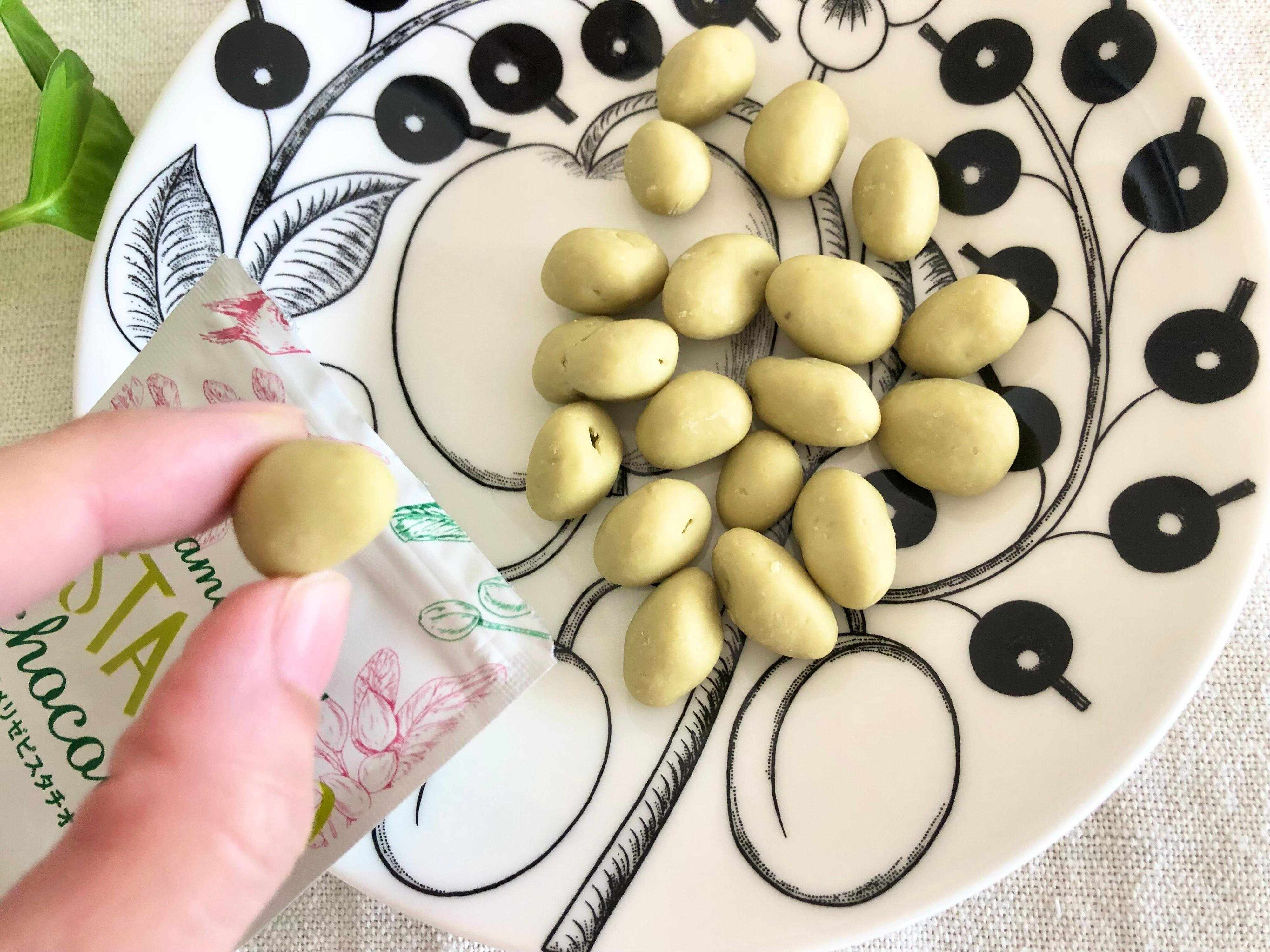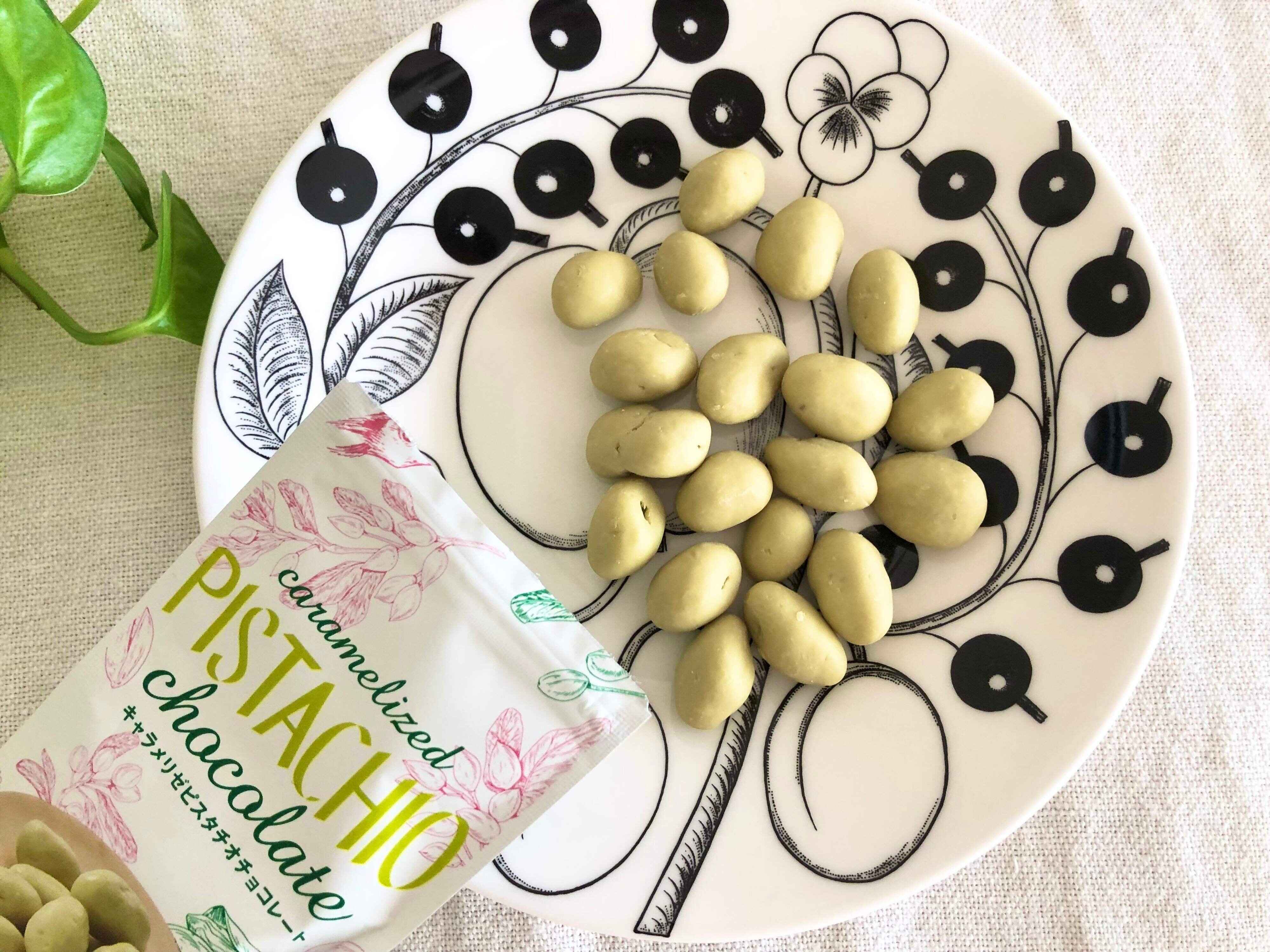 「キャラメリゼピスタチオチョコレート」は商品名の通り、ピスタチオをキャラメリゼしてからホワイトチョコレートでコーティングした商品です。