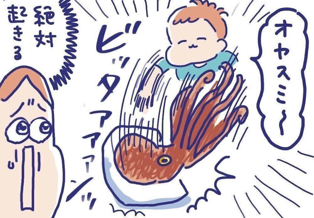 そろそろ寝そうな雰囲気からの「あっタコが起きちゃった」は大変でしたね。タコの寝かしつけには、どのくらいの時間がかかったのでしょうか。