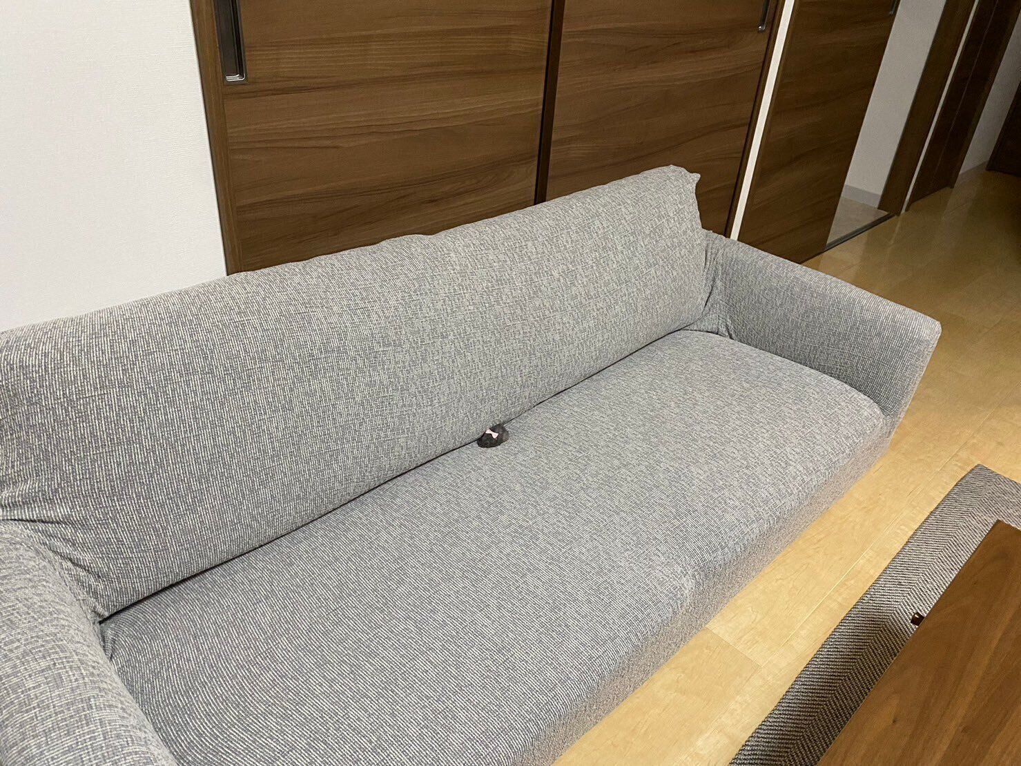 「このときは買ったばかりのソファカバーを掛けた直後で、肌触りがお気に召したのかすぐにスリープモードに入りました。