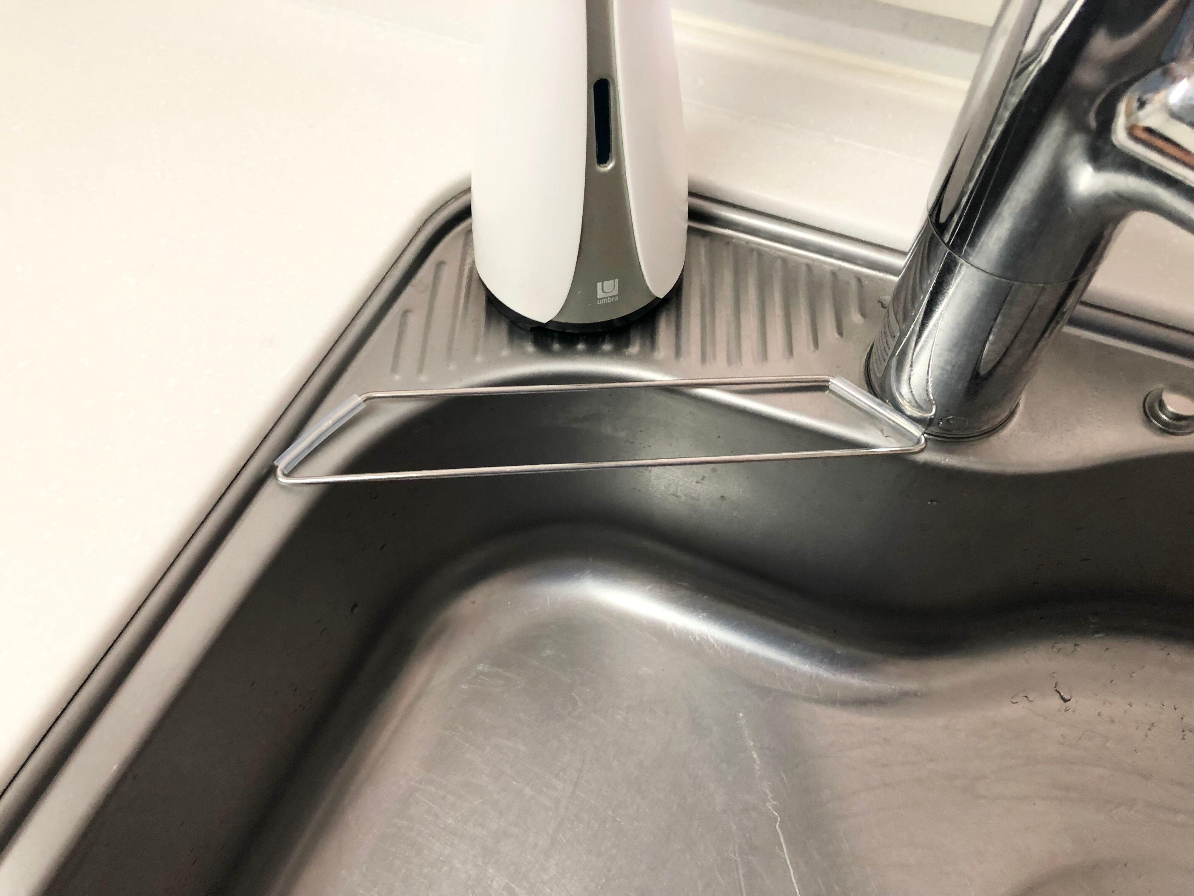 まず、シンクのコーナーに商品の両端の斜めの部分が掛かるように設置します。