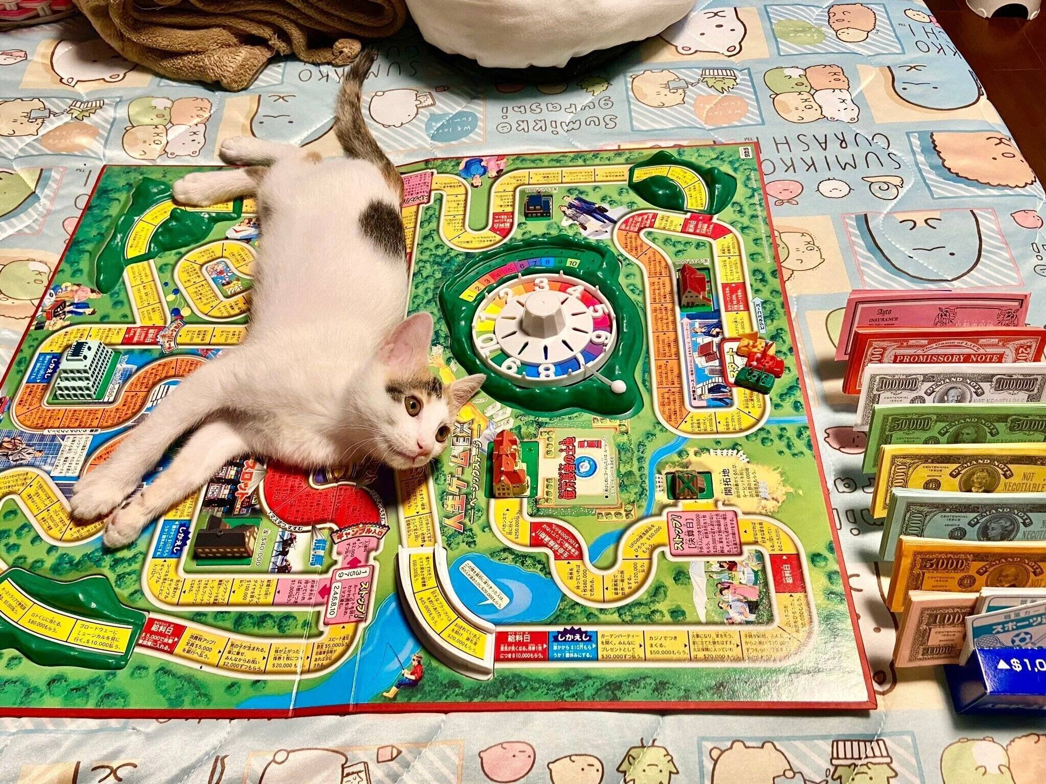 ゲーム盤の上から退かないので、この子はもう人生ゲームの一部なのだと諦めました」