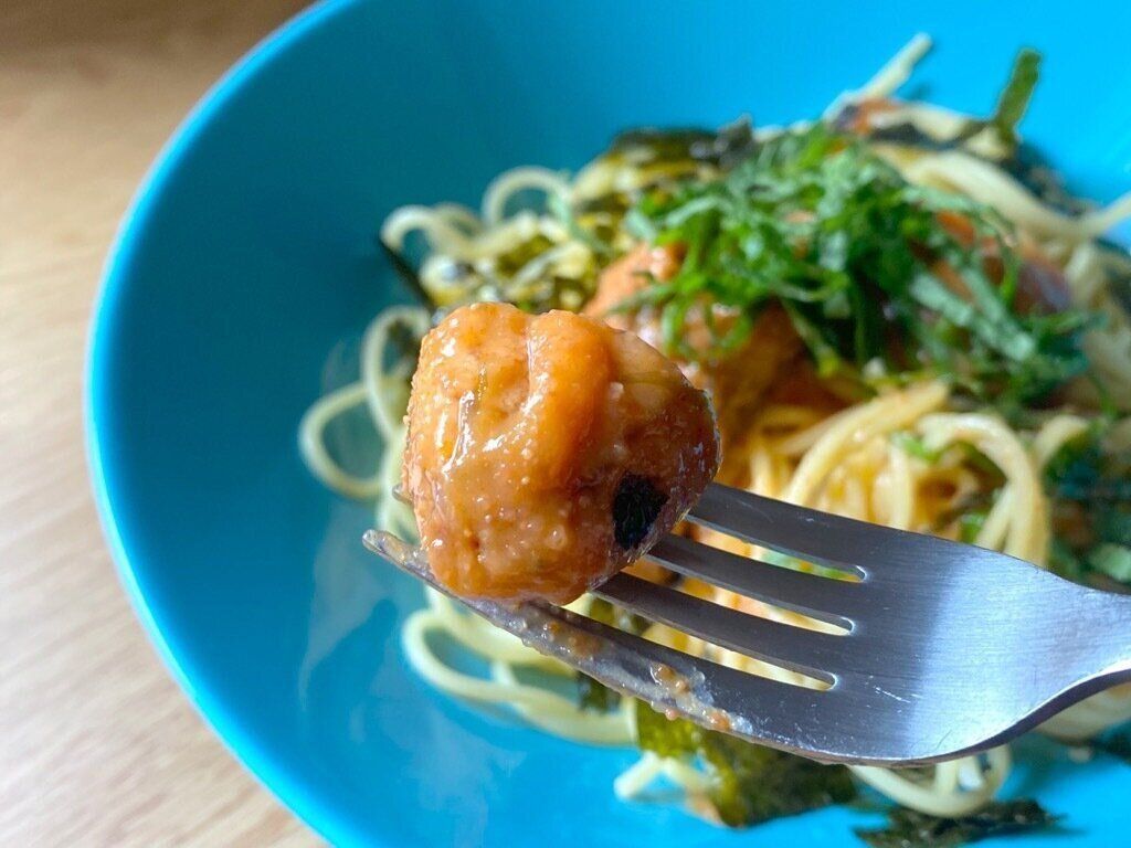 ソース自体はやや薄味に感じましたが、ゴロっと大きめのたらこにしっかり味がついているのでいっしょに食べるとちょうどよいバランス。大きめにカットされたたらこは、昆布や魚醤の旨みがしっかり染みていて、たらこ好きにはたまらないおいしさ。たらこ独特のつぶつぶ食感も楽しめます。全体的にだしの旨みがきいていて上品な味わいですが、食べ応えがあり満足度の高いパスタでした。大葉やもみ海苔をトッピングすると、より贅沢感がアップするのでオススメです。