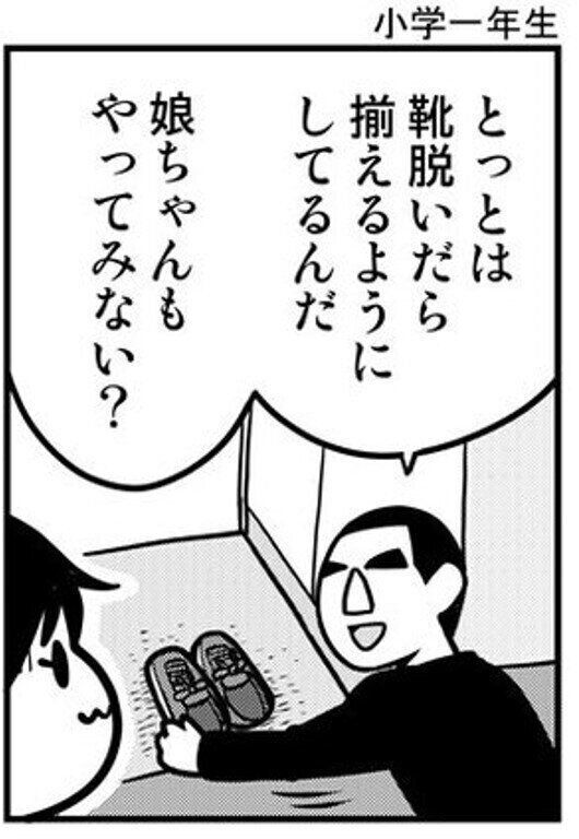 とっとから「靴をそろえてみない?」と提案された、小学校1年生の娘ちゃん。娘ちゃんのリアクションはなんと……。