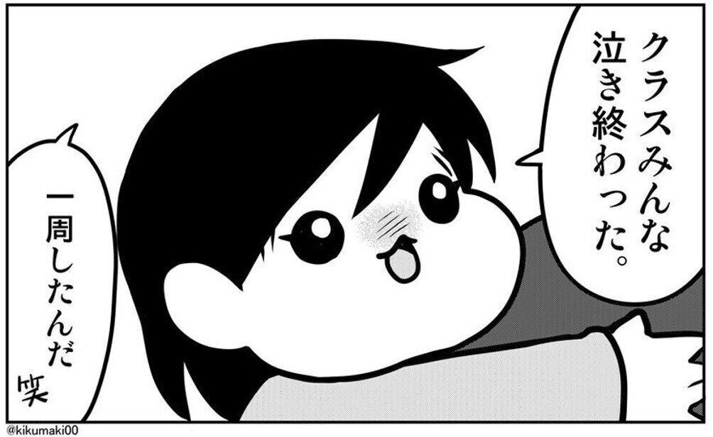 きくまきさん(@kikumaki00)が「泣く一年生」というコメントとともにTwitterに投稿した漫画をご紹介します。作者のきくまきさんにお話をうかがいました。