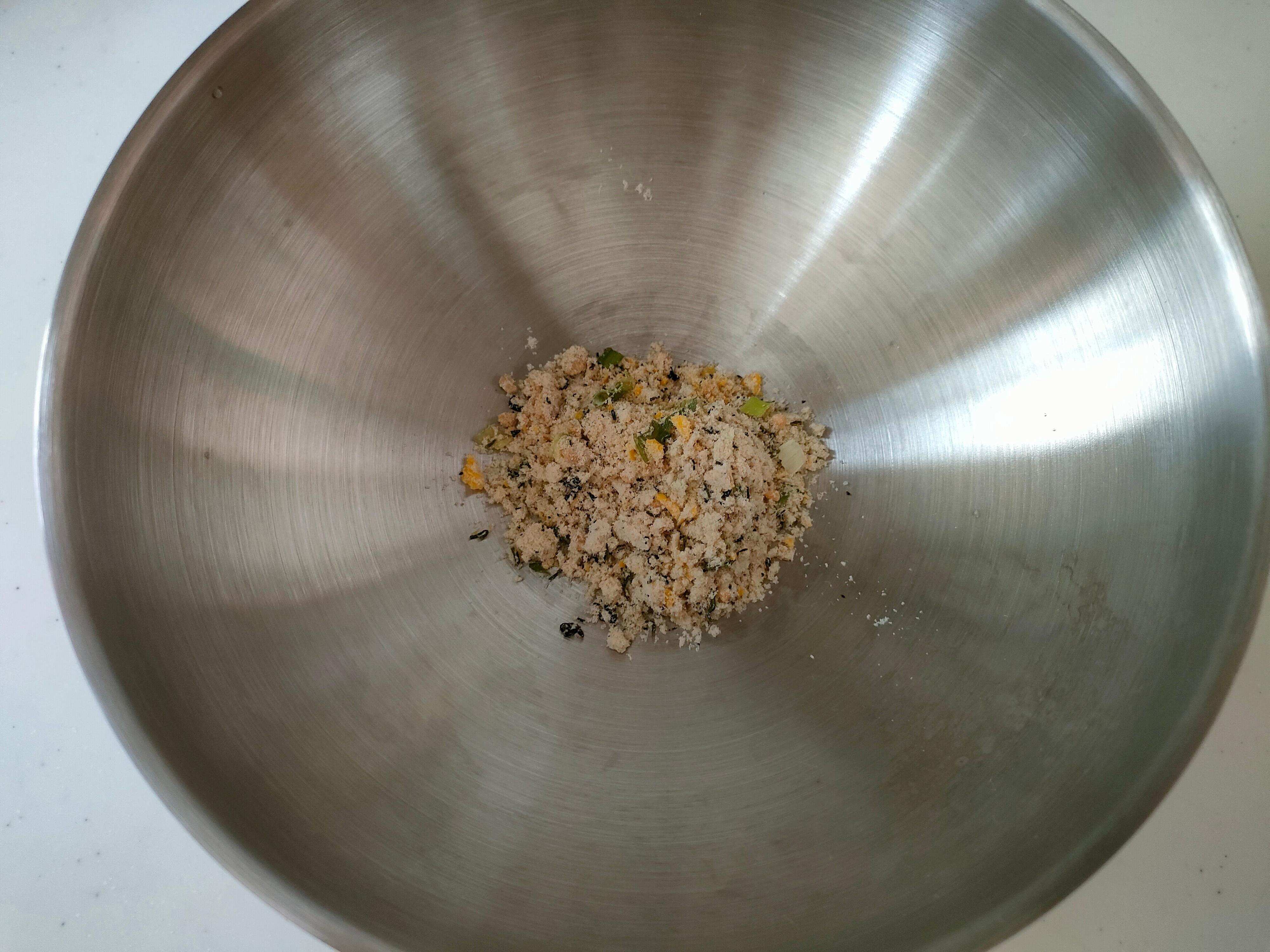 ボウルに素をあけてみるとこんな感じです。ネギやガーリックが入っているのがみえますね。