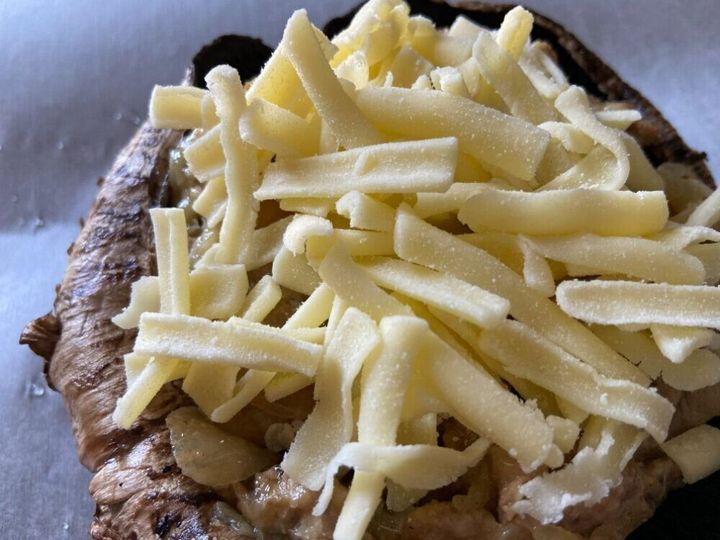 大きなマッシュルームを手に入れたので、カットせずに豪快にかさの部分にチーズをのせてトースターで焼きました。