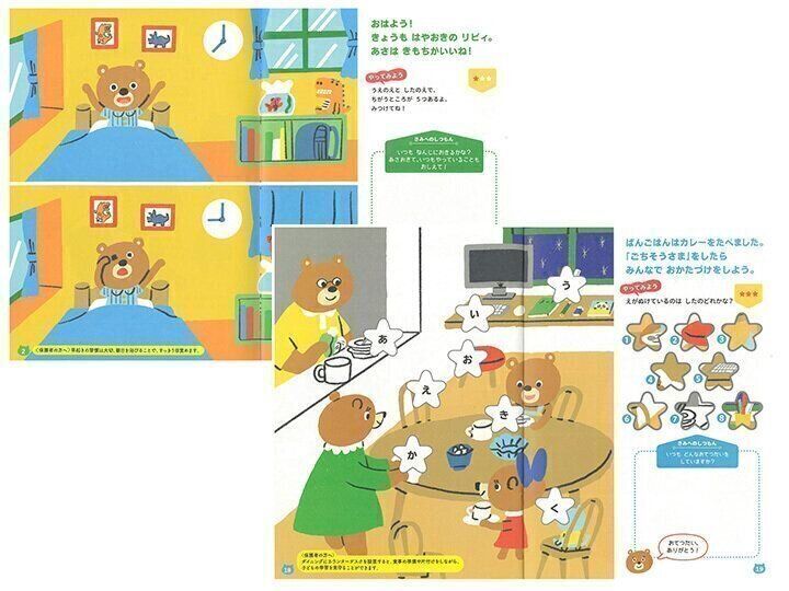 もらえる2冊目は、遊びながら生活習慣が身につくワークブック『リビィのおうちじかん』。子どもの関心を引くかわいらしい絵と内容で、リビィの起床から就寝までを通して、日々の生活習慣を学んでいく絵本です。