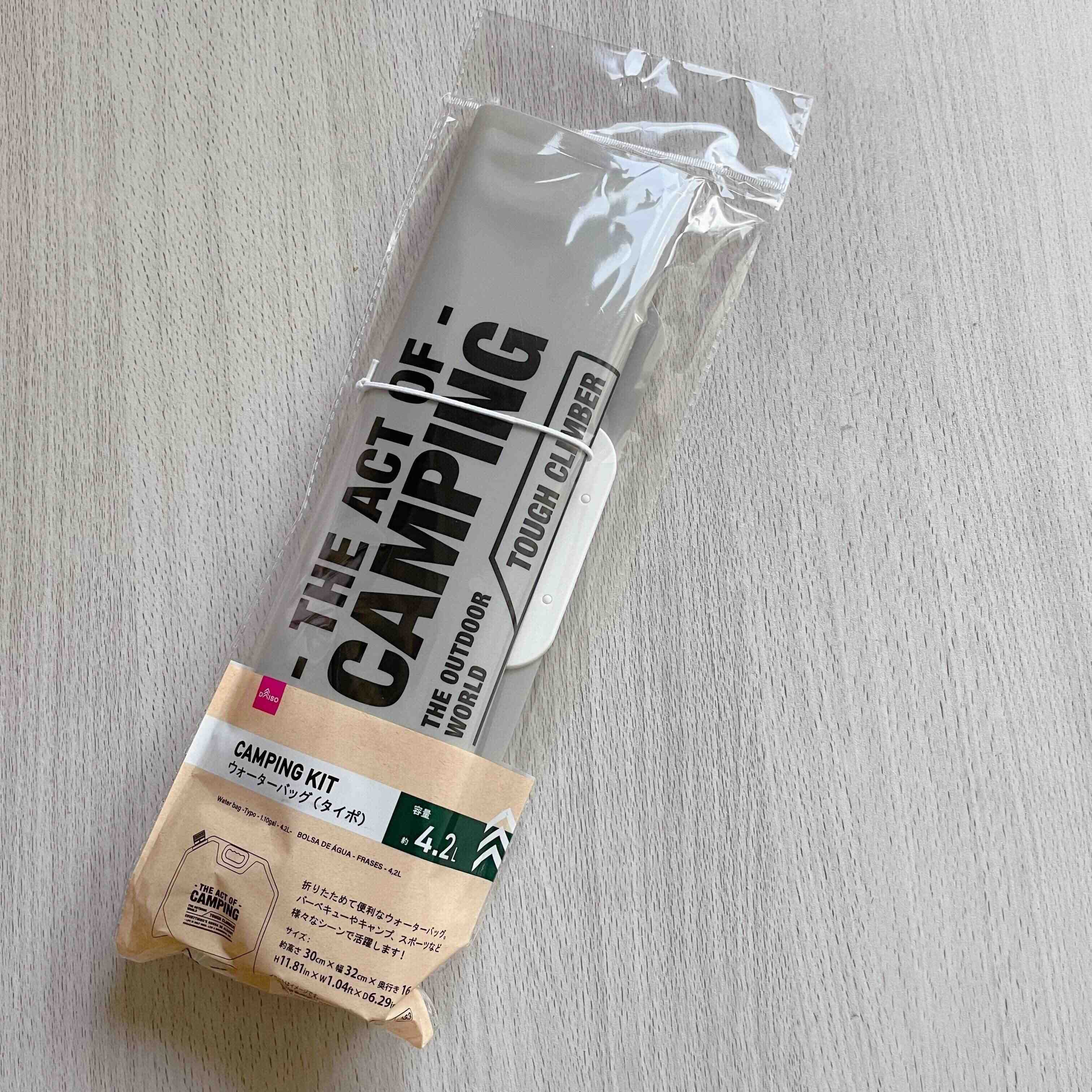 ウォーターバッグ(タイポ)は、キャンプコーナーに置いていましたが、さまざまなシーンで活躍するアイテムです。価格は1個110円。