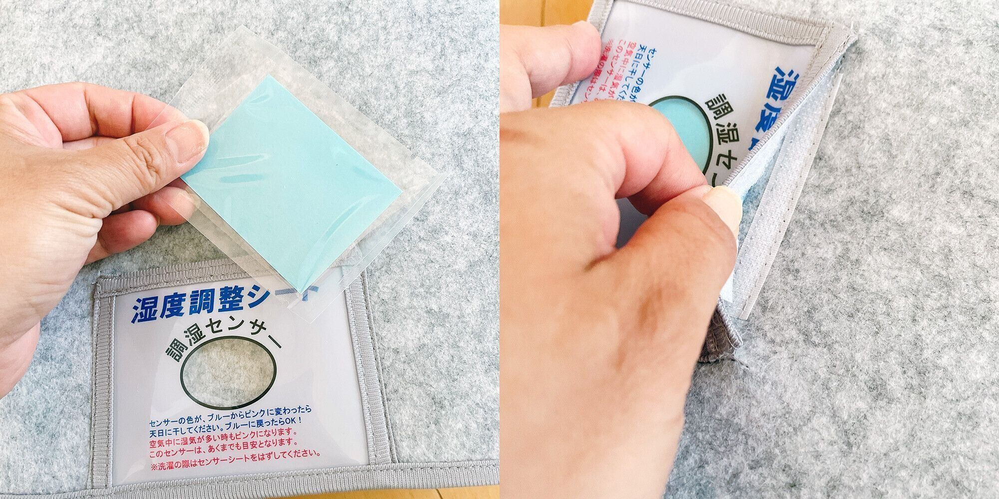 『調湿センサー』の窓がついているポケットに、湿度調整シートを入れるようになっています。
