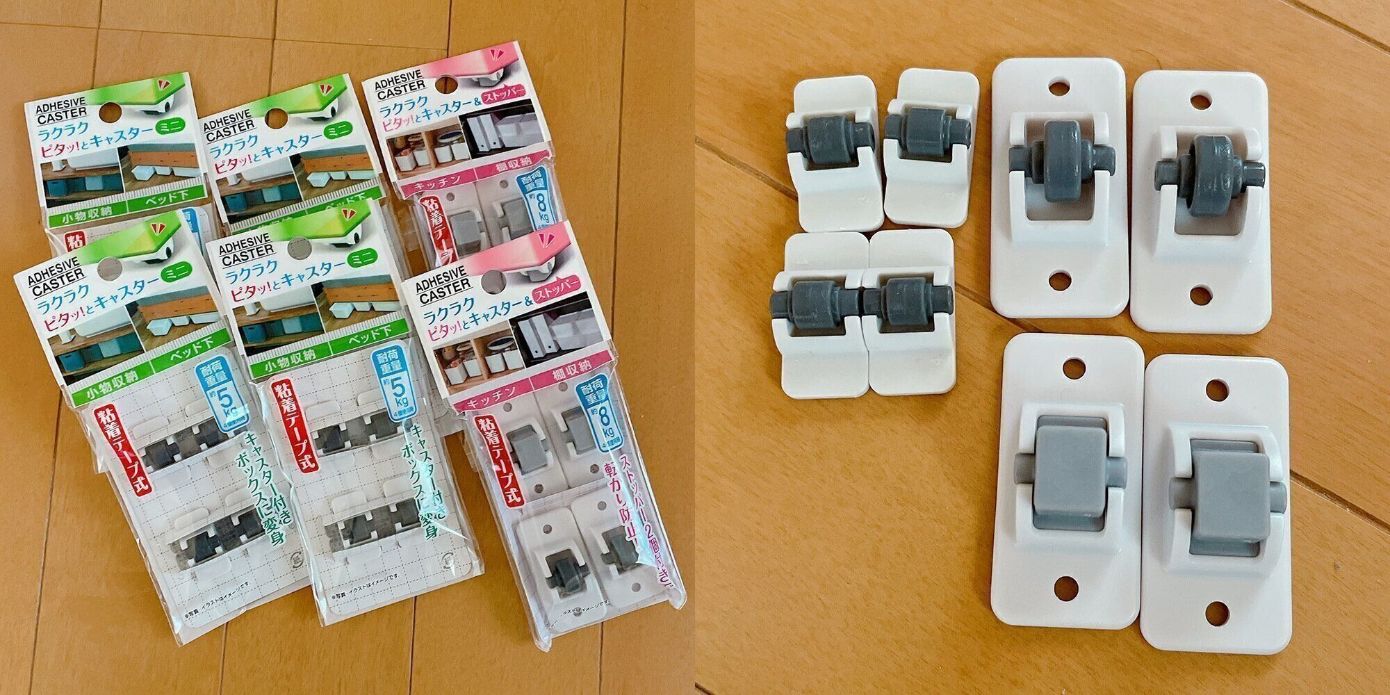 「貼れる取っ手」も「ラクラクピタッ!とキャスター」も、どの100均でも取り扱いのある商品です。