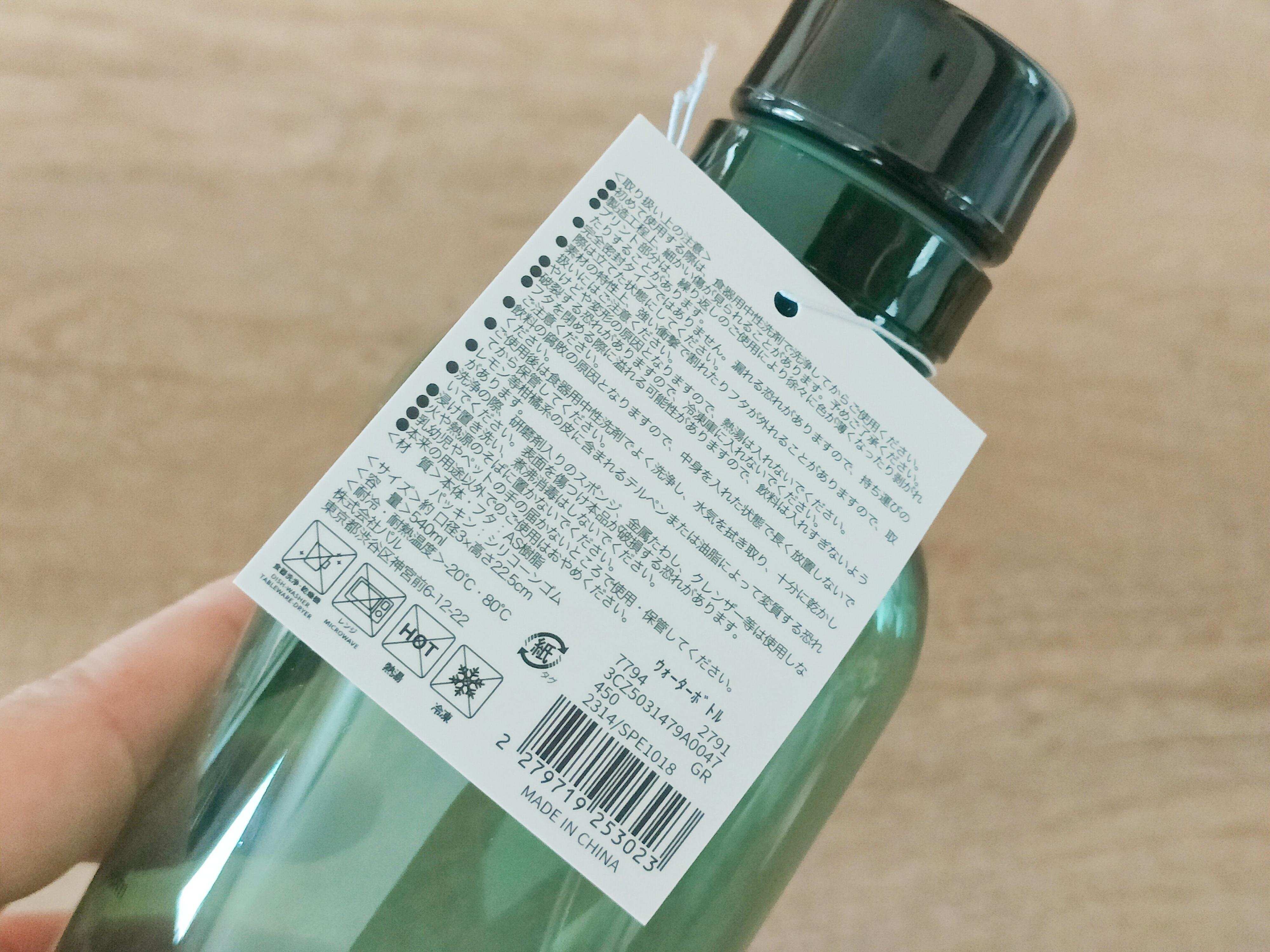高さは22.5cmで、内容量540ml。ほかブランドは1Lで販売されているものが多いので、持ち運びに苦労されているかたもいるようですが、こちらはリュックのポケットなどにも入って便利です。