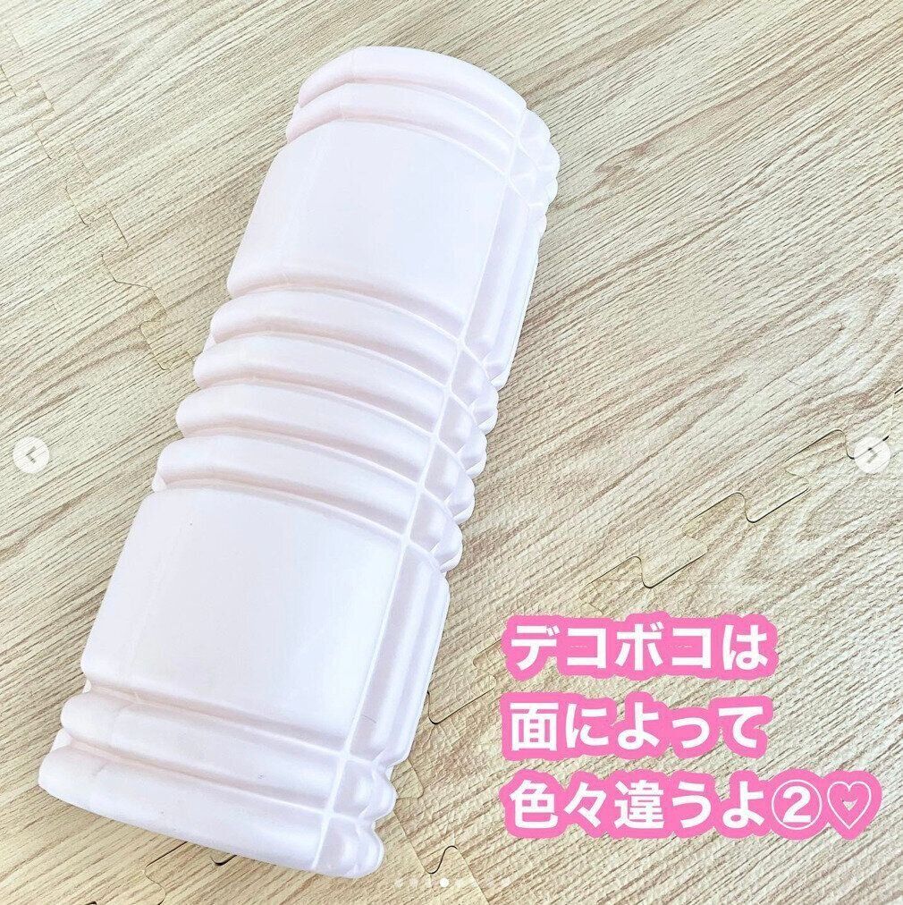 そして今話題の「筋膜リリース」ができるアイテムがダイソーから登場!なんと550円で買えるボディローラーです。カラーはピンクとグレーの2種類。ローラーに体の一部を乗せ、体重をかけながらローラーを転がして使います。