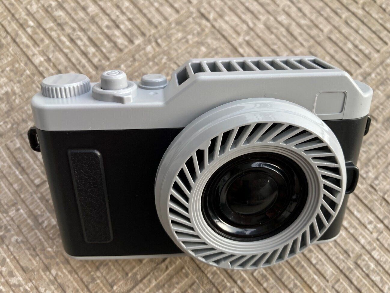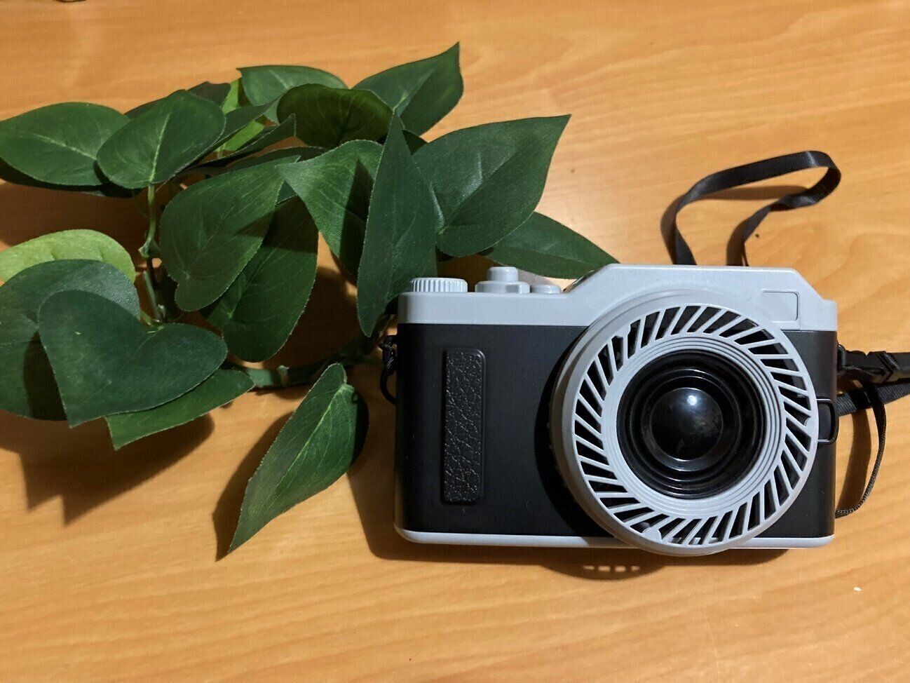 昭和レトロなデザインが魅力の「ミニ扇風機カメラ」(330円)