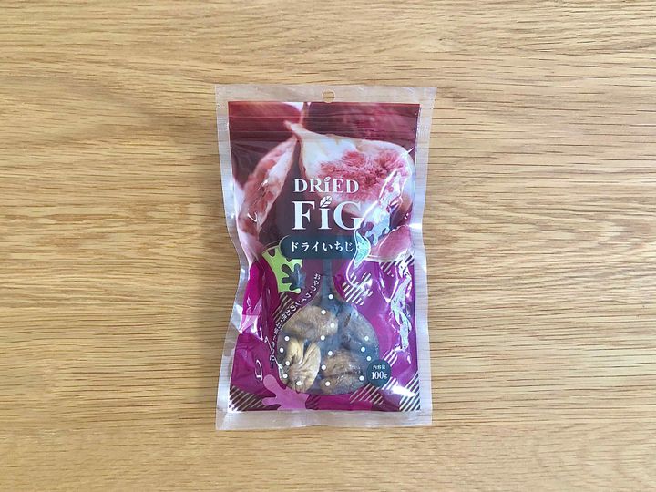 100gだとだいたい大粒のドライいちじくが、1袋に9粒ぐらい入っています。