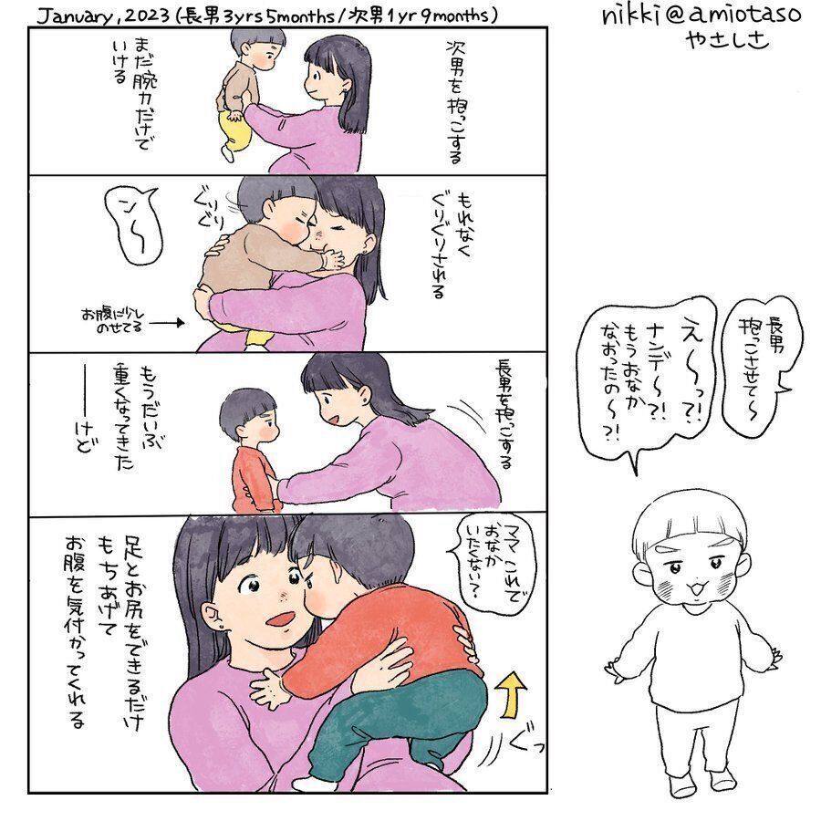 3歳と1歳の息子さんを育てる、あみさん(@amiotaso)。息子さんたちとのスキンシップについて描いた漫画をTwitterに投稿したところ、「お兄ちゃん優しすぎる!」と多くの話題を集めています。詳しいお話を作者に聞きました。
