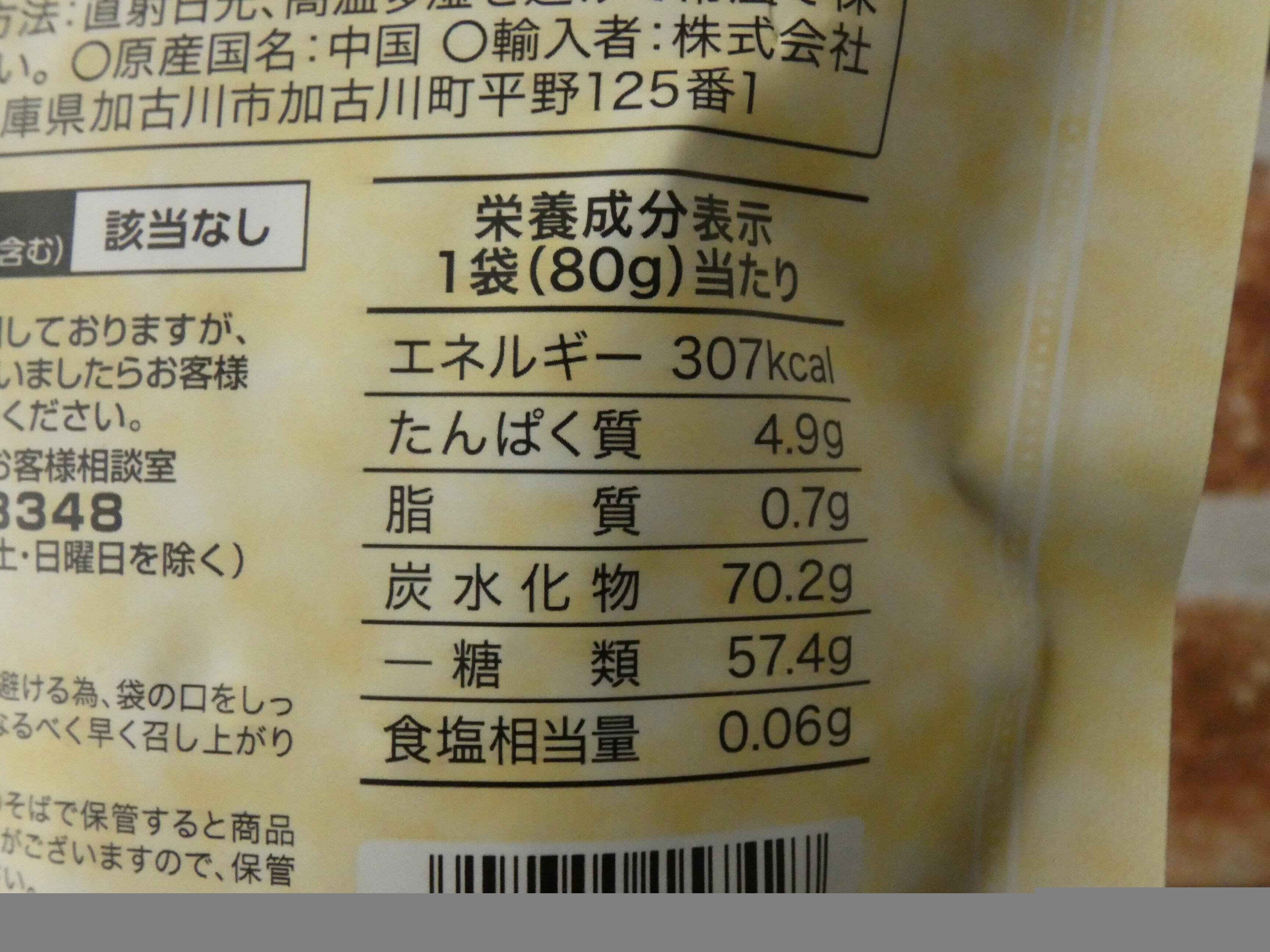 栄養成分表示を見ると、1袋(80g)あたりのエネルギーは307kcal。
