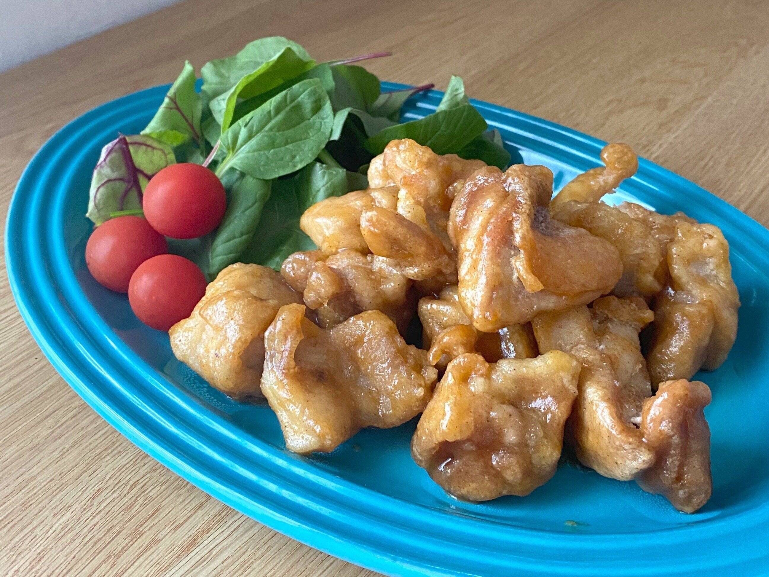 唐揚げにからめた瞬間に油淋鶏のような甘酸っぱい香りがひろがり食欲をそそります。