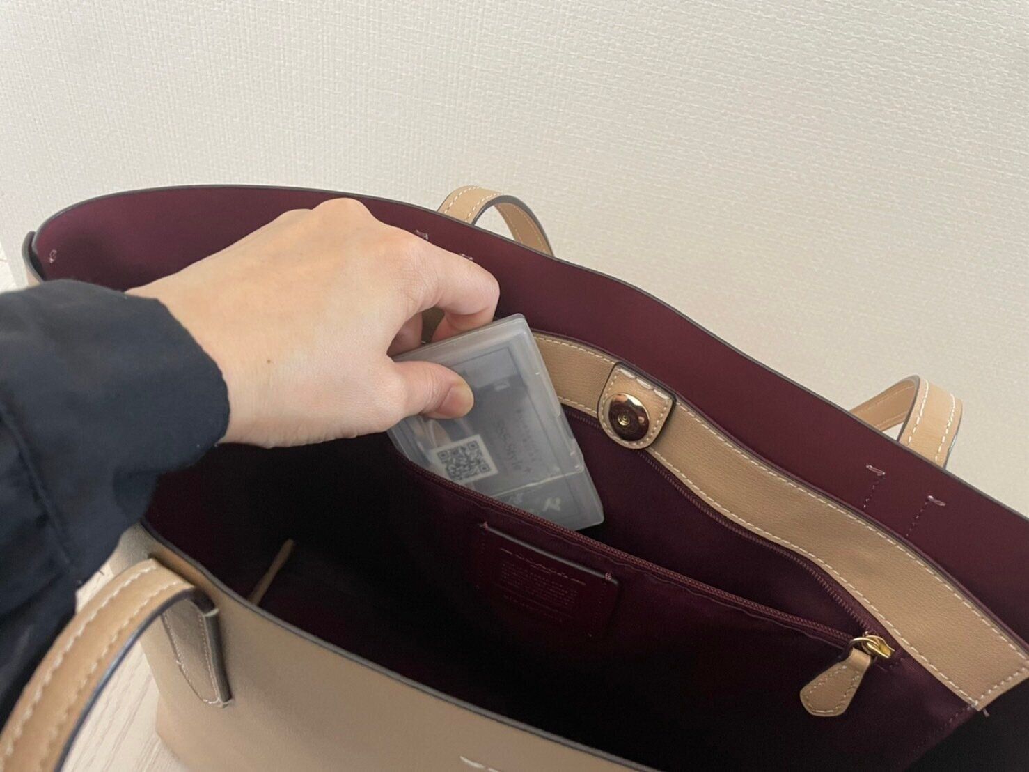 カバンのサイドポケットなどにも邪魔にならず収納できます。革製のカードケースなどに比べると、かなりの省スペース&軽量なので、荷物がスッキリしますよ。