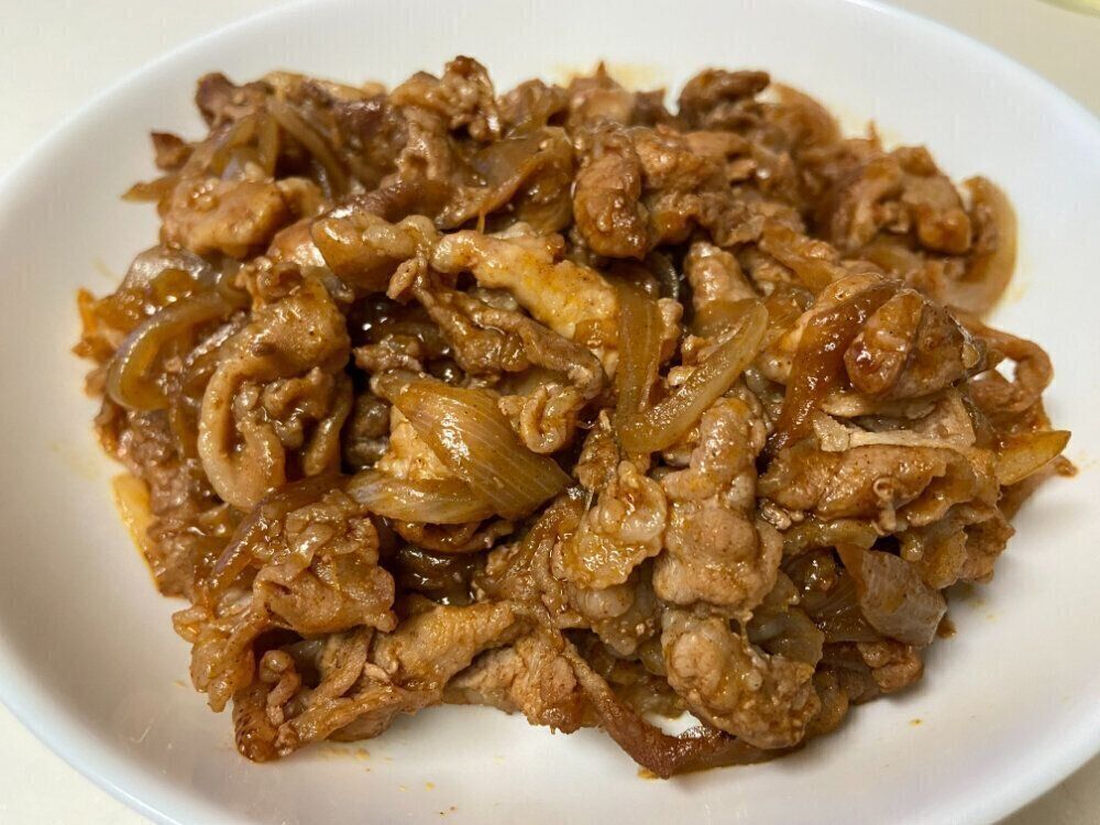 豚こま切れ肉と新玉ねぎを炒めて味つけに「ヤンニョムチキンの素」を加えた「ヤンニョムポーク」。これがまた絶品!チキンもいいけどポークもいい!味つけがこれだけですむ手軽さとやみつき感のある味わいに、すっかりハマってしまいました。