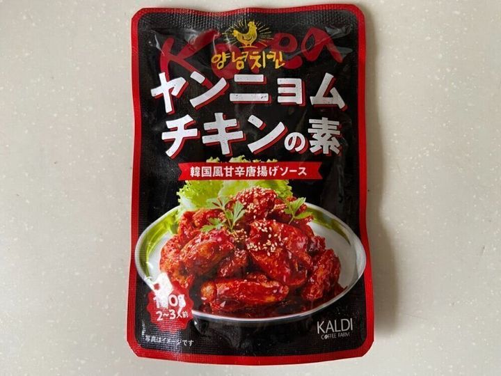 一般的なスーパーでもよく見かけるようになったヤンニョムチキン用の調味料。カルディの「ヤンニョムチキンの素」(購入時:198円)はより本格的な味!と話題です。製造は大手メーカーの日本食研。コチュジャンベースの甘辛いタレに独自のスパイスを配合したこだわりの一品です。