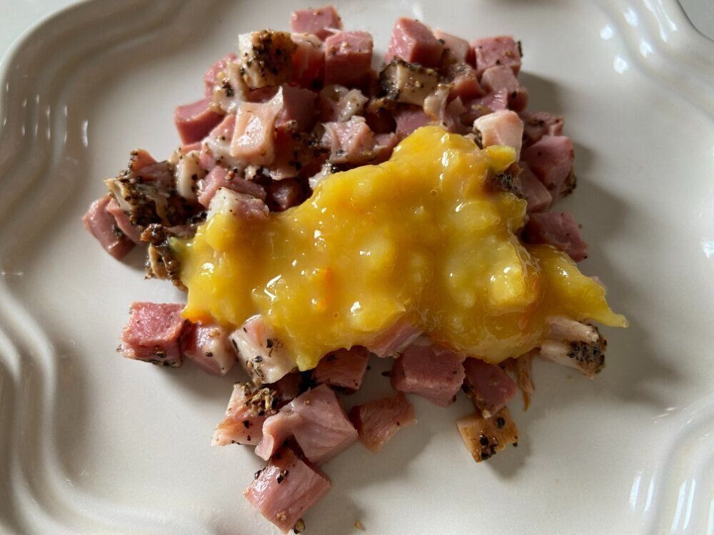 解凍した合鴨パストラミにマーマレードをのせるだけの手間なし簡単アレンジで、味はおしゃれで絶品!マーマレードのフルーティーさと皮のほろ苦さに合鴨の味わいがガチッとハマって絶妙の一皿。ワインのおともとしても最高ですよ。
