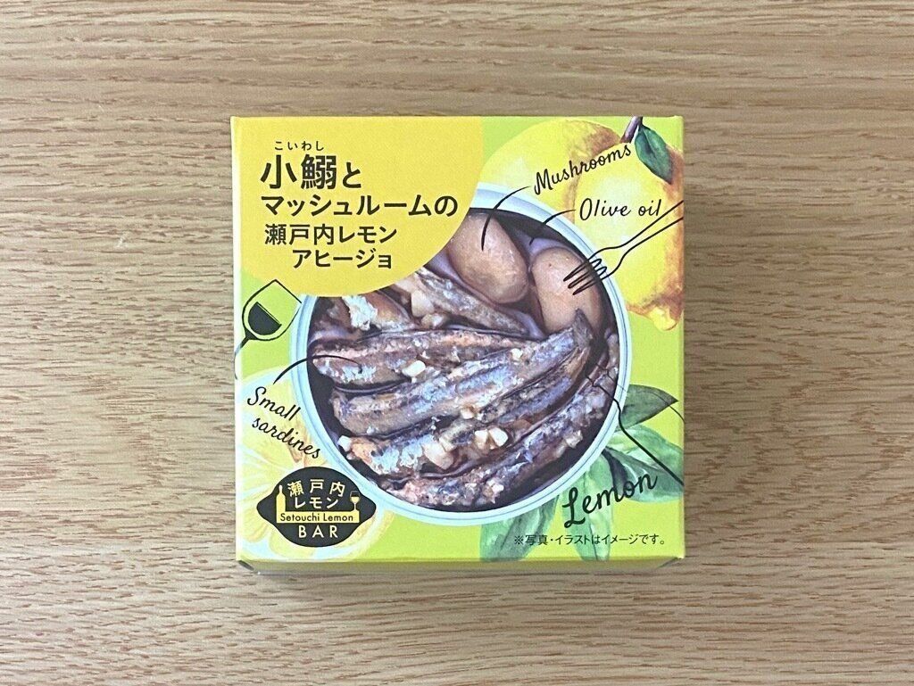 瀬戸内海産の小鰯とマッシュルームを、オリーブオイル、にんにく、ホタテエキス、レモン汁、唐辛子、白コショウで味付けしたアヒージョの缶詰です。