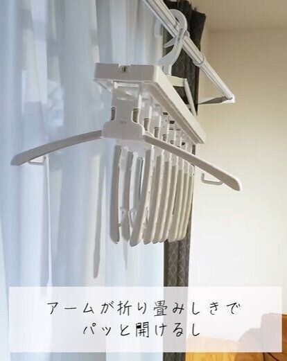 洗濯物は干すのも取り込むのも結構大変…。そんな大変な作業を楽にしてくれるのが、ニトリの「ワンタッチ取り込みスライドアーム8連ハンガー」です。上部のボタンをつまむだけでワンタッチでアームが畳めて、スルッと取り込みができます。コンパクトに収納できるのもポイント!1,290円です。