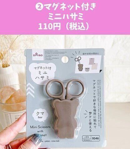 くすみブラウンとミニサイズのくまちゃんシルエットがかわいいこちら、マグネット付きのミニハサミです。くまちゃん型のケースの裏側にマグネットがついているので、冷蔵庫や玄関ドアなどにくっつけておくことができます。必要なときにサッと使えるのがいいですよね。