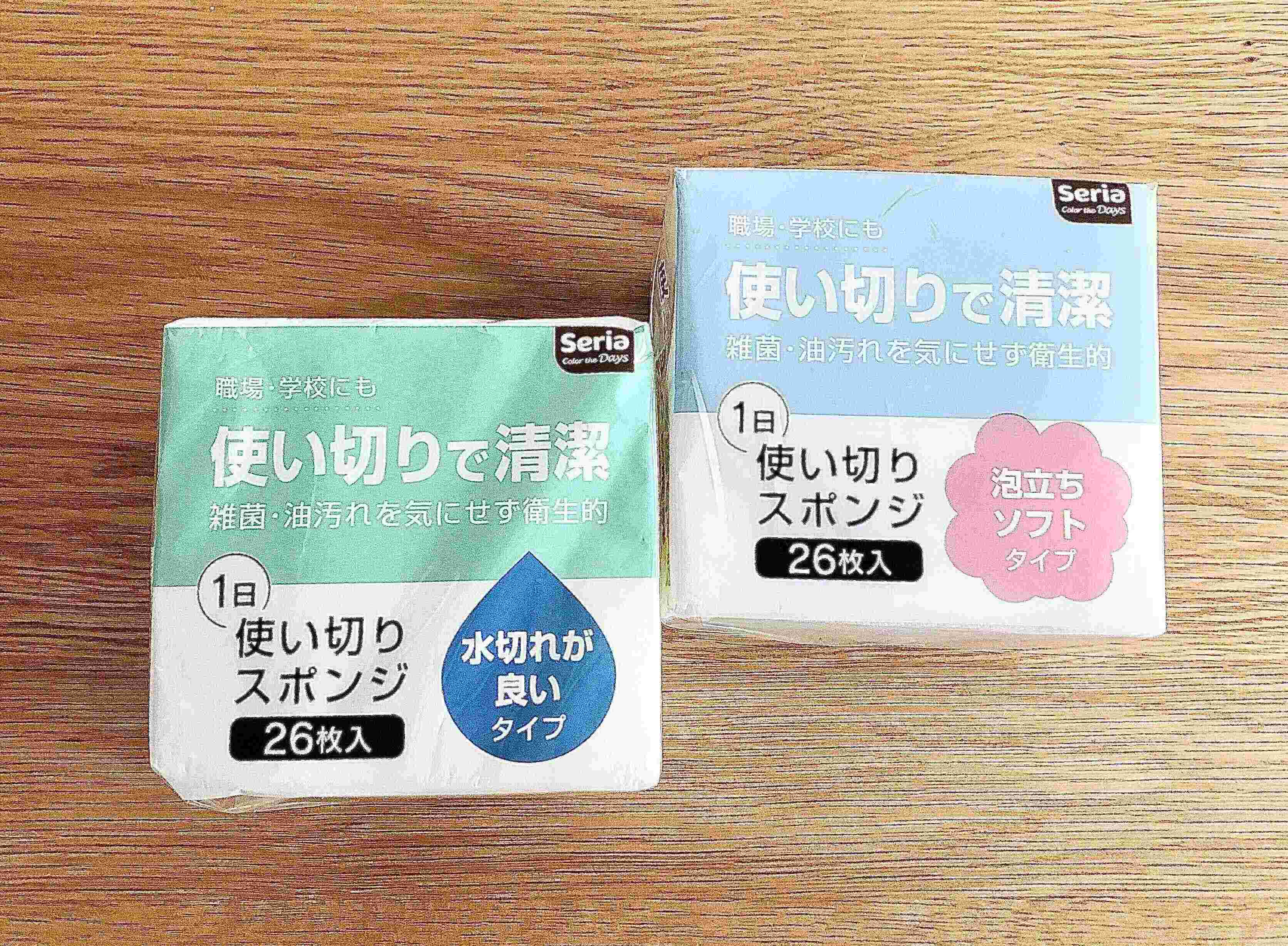 ご紹介するのは、セリアの「1日使い切りスポンジ」です。