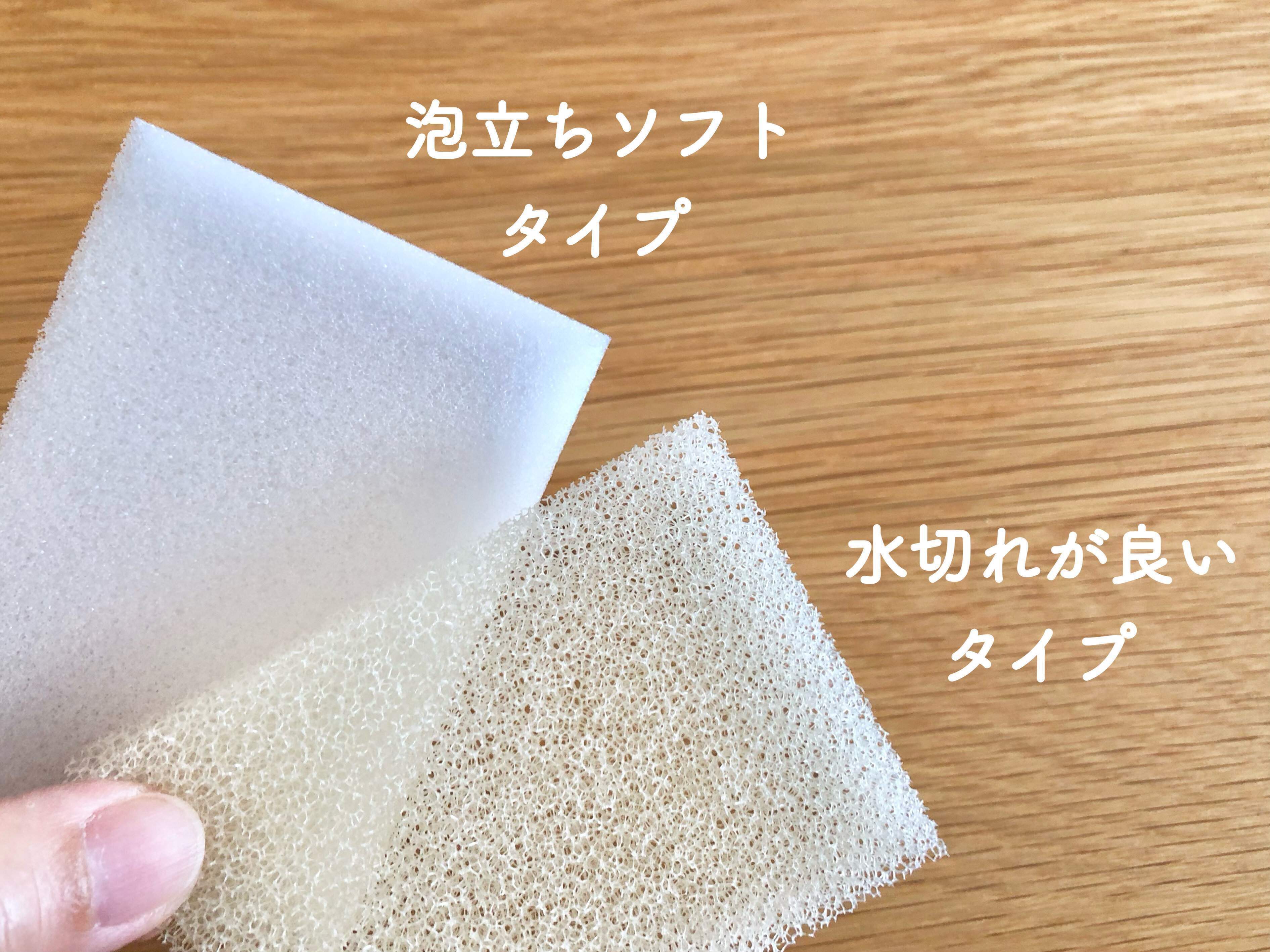 泡立ちソフトタイプは、目が細かくてとても柔らかいのが特徴です。少ない洗剤でも泡立ちが良く、お皿やグラスなどを優しく洗える万能なタイプです。