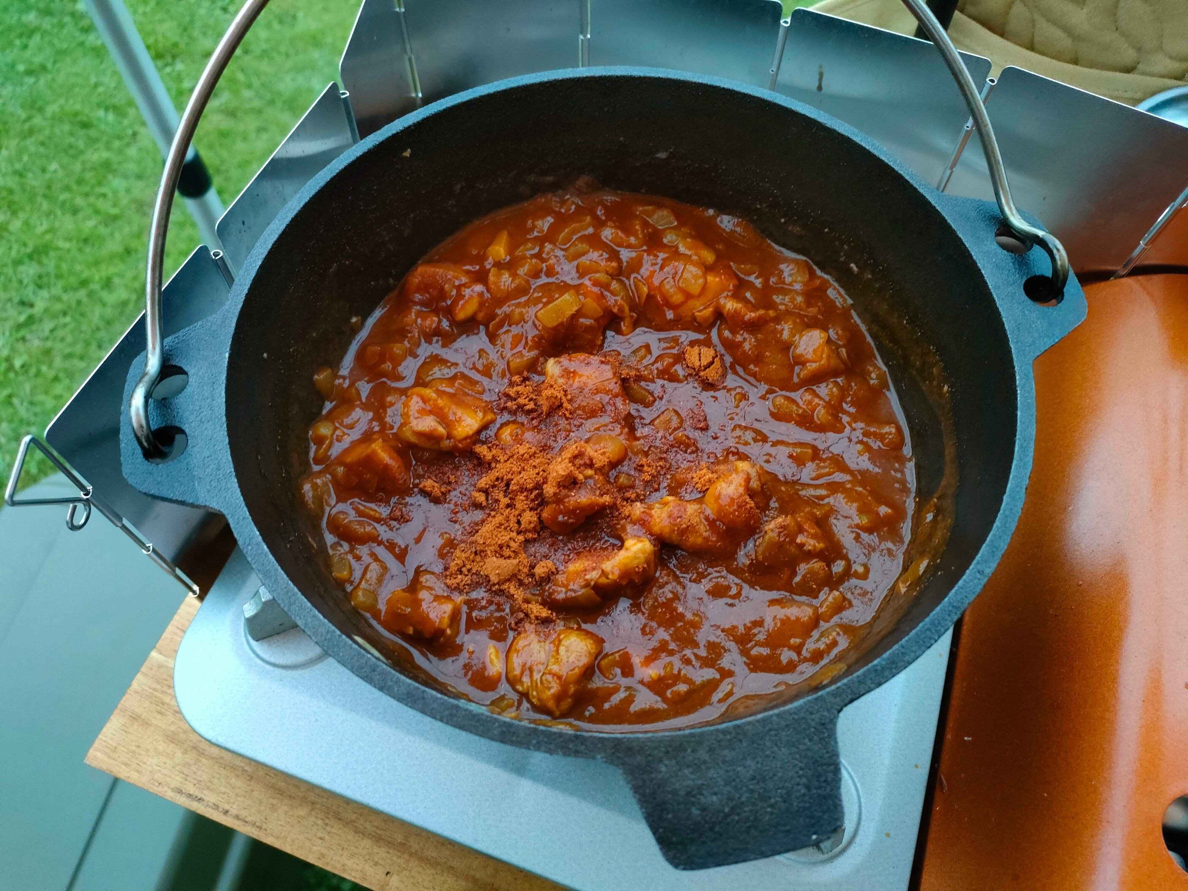 最後の仕上げに、香りのスパイスを加えて3分ほど煮込めばできあがり!
