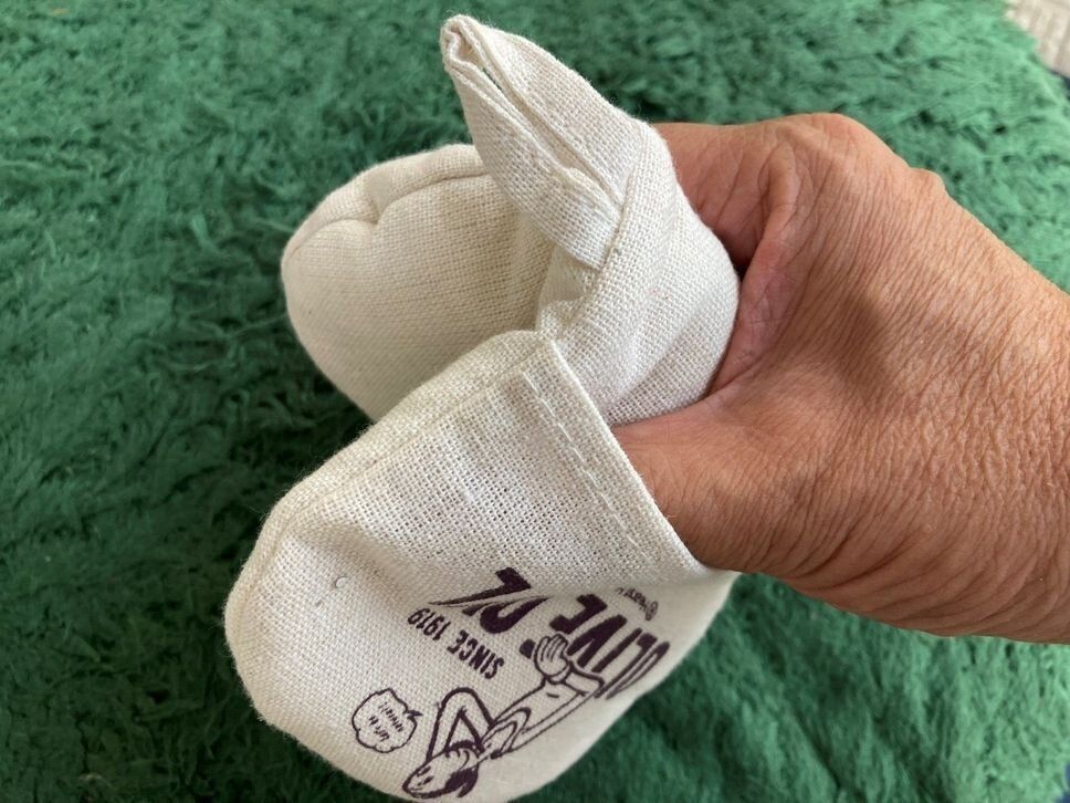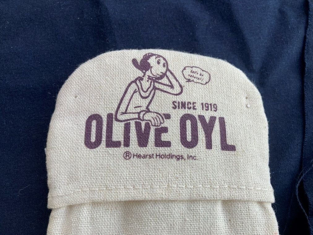 最初にご紹介するのは、「ポパイ」のキャラクターがデザインされた鍋つかみ。絵柄は主人公ポパイが描かれたものと、恋人のオリーブが描かれたものの2種類で、好きなほうを選べます。今回私は、子どものころに好きだったオリーブの絵柄を迷わず買いました。