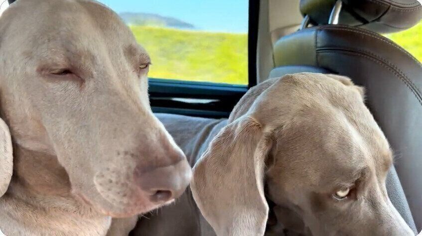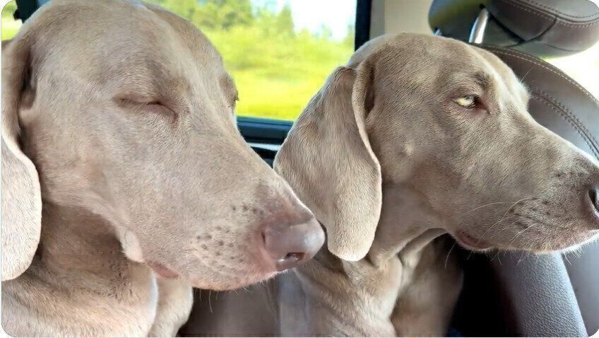 るぴろあワイマラナーさん(@lupiloa_weim)には、るぴくんとろあくんという2頭のワイマラナーがいます。ある日、遊びに出かけた帰りの車内で、飼い主さんは必死で眠気に耐える2頭の姿を目撃しました。そのときの詳しい様子を紹介します。