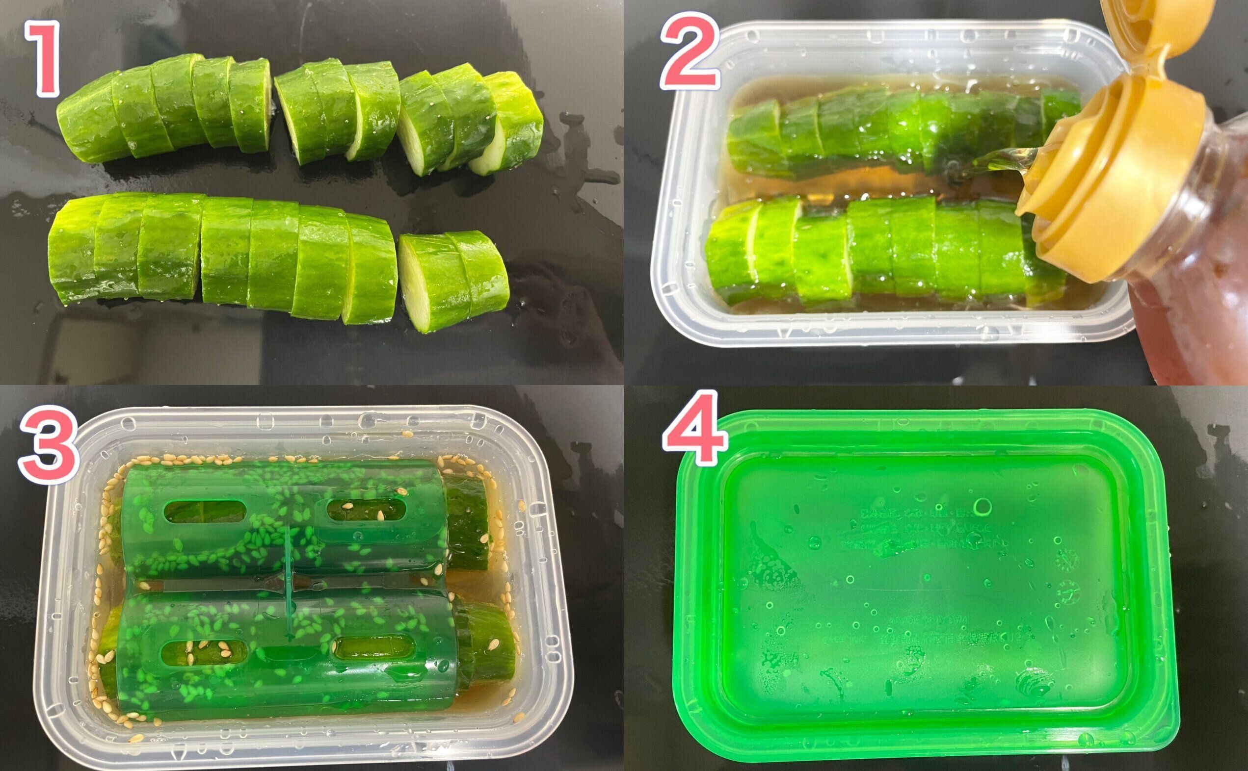 調味料を入れたら落としブタをして、さらに上から本体のフタをしたら、冷蔵庫で2時間程度寝かせて完成です。