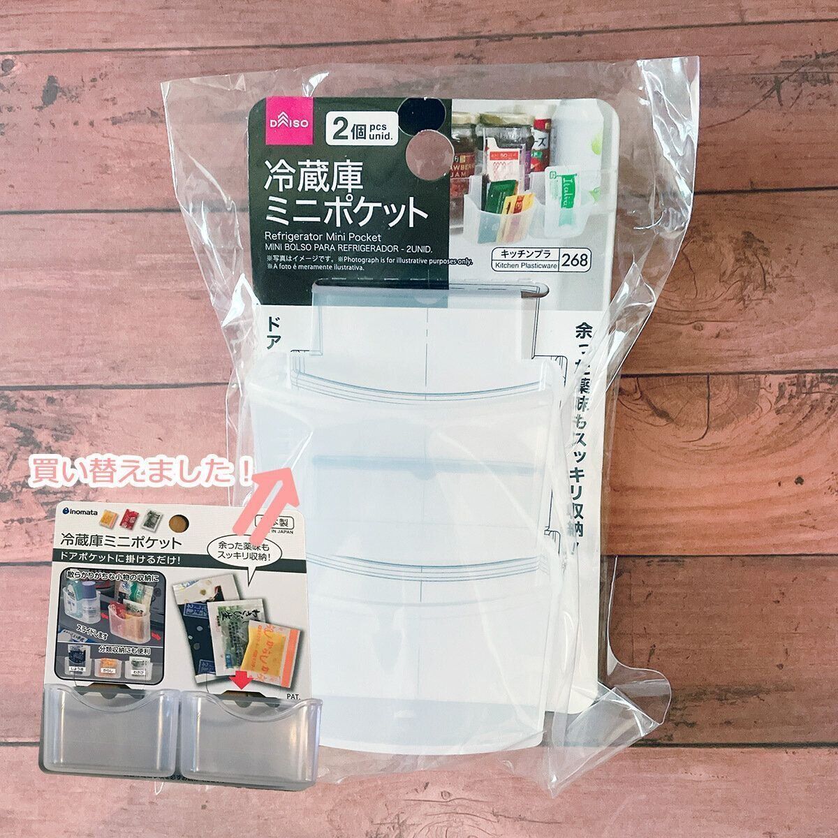 ダイソーの冷蔵庫ドアポケット収納グッズ、便利です