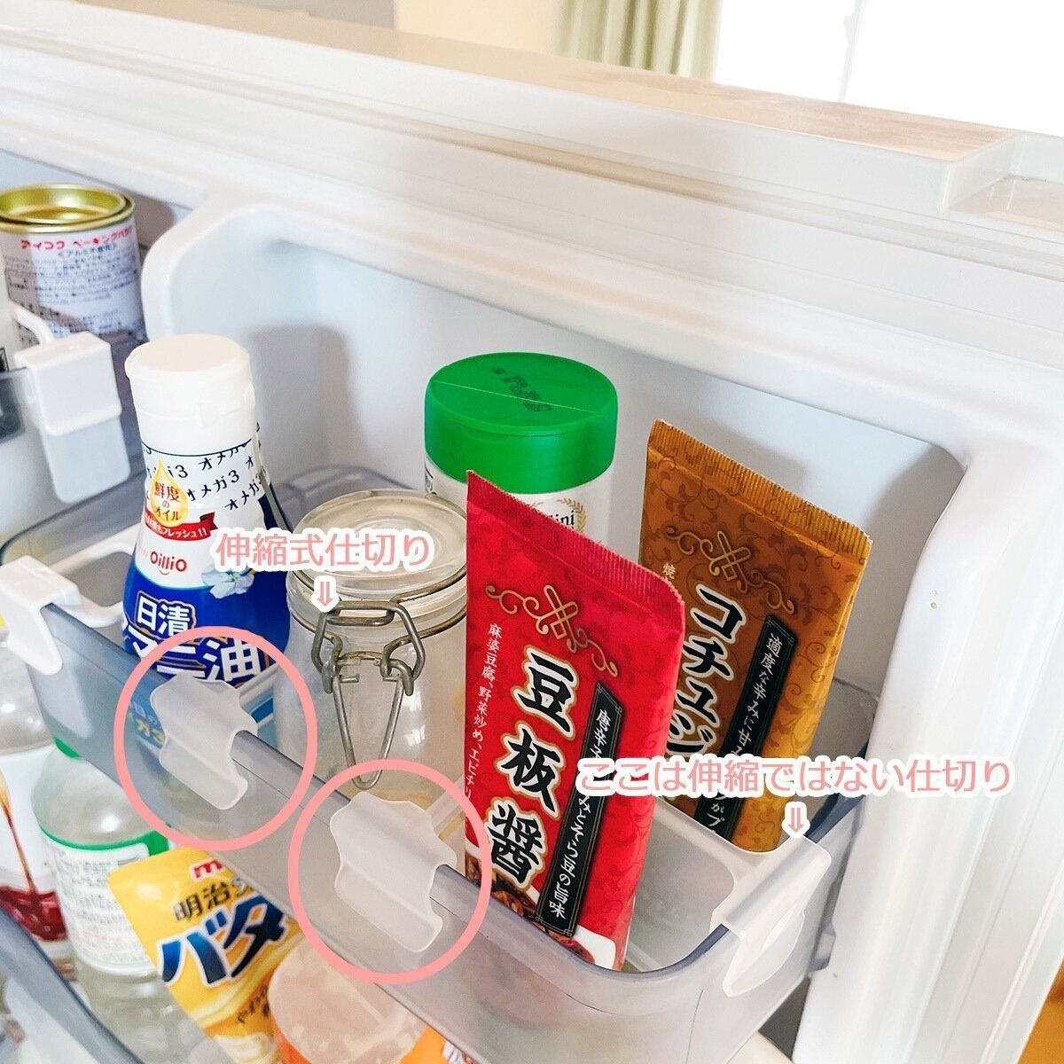 冷蔵庫によってドアポケットの奥行は違うので、伸縮できないものだと大きさがうまく合わずに不便に感じていたのを解消してくれたアイテムでした。