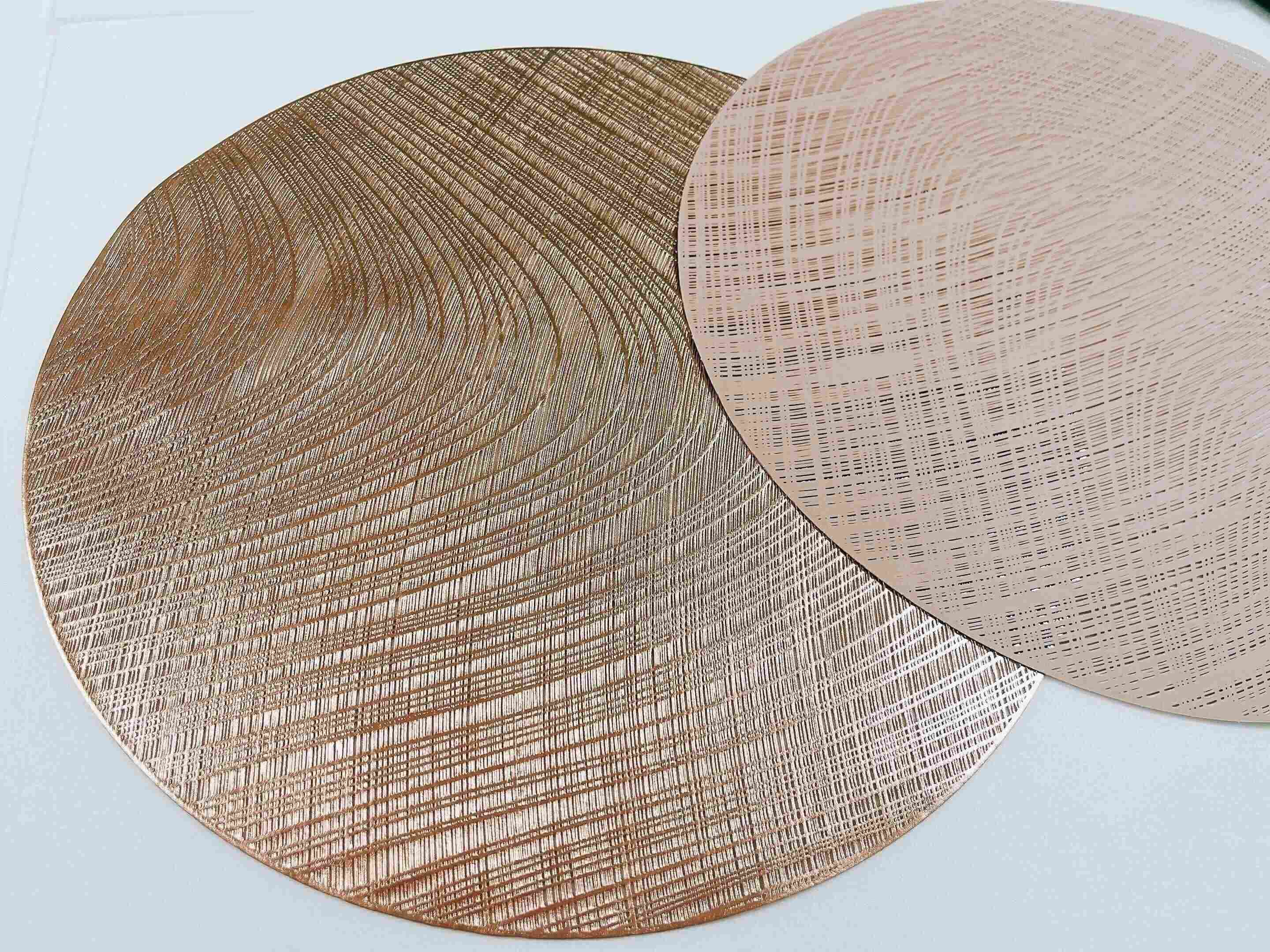 ピンクゴールドのランチョンマットも110円。ゴールドやシルバーもあります。表は凹凸がありますが、裏は平らなのですべりにくくなっています。