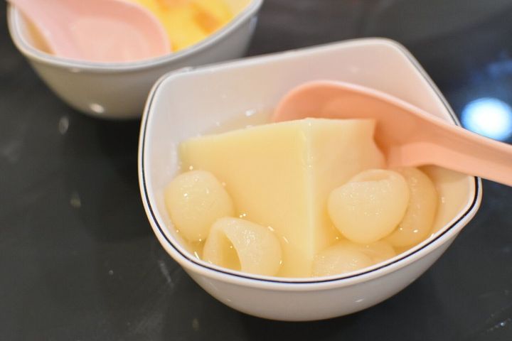 ”豆腐花”とよぶのは、主に中国南部やマカオや香港など。豆乳を硫酸カルシウム等の凝固剤で固めたもので硬さや食感などはお店によって異なりますが、日本の絹ごし豆腐にちょっと似ています。