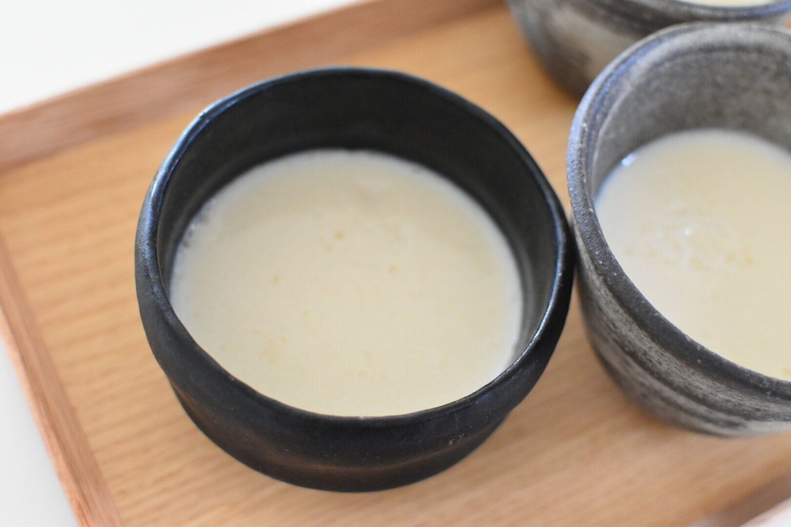 3.プリンカップなどの器に茶こしなどで濾しながら入れたら、冷蔵庫で固まるまで2~3時間冷やす