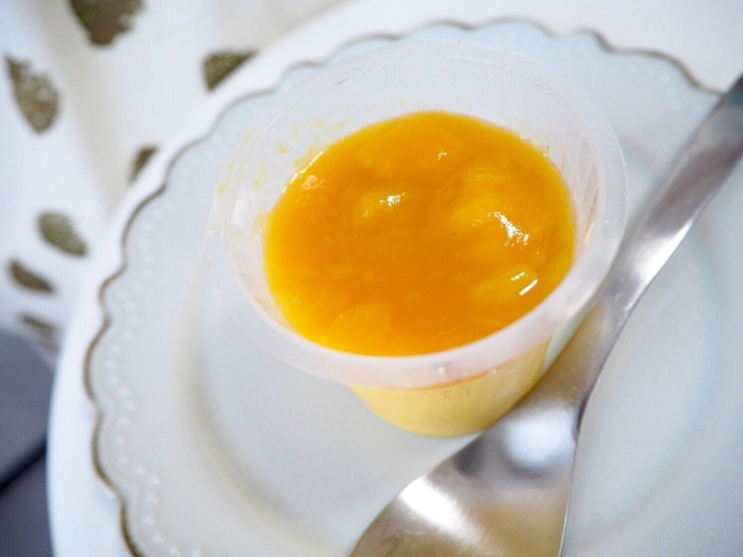 マンゴープリンの上に、マンゴーソースをたっぷりかけたマンゴーづくしのスイーツです。